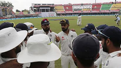 ಕಾನ್ಪುರ(ಸೆ. 26): ಐತಿಹಾಸಿಕ 500ನೇ ಟೆಸ್ಟ್ ಪಂದ್ಯದಲ್ಲಿ ಭಾರತ ತಂಡ ಭರ್ಜರಿ ಗೆಲುವು ದಾಖಲಿಸಿದೆ. ನ್ಯೂಜಿಲೆಂಡ್ ವಿರುದ್ಧ ಪ್ರಥಮ ಟೆಸ್ಟ್ ನಲ್ಲಿ 197 ರನ್ ಗಳ ಭರ್ಜರಿ ಜಯ ಸಾಧಿಸುವ ಮೂಲಕ 500ನೇ ಟೆಸ್ಟ್ ಪಂದ್ಯವನ್ನು ಮತ್ತಷ್ಟು ಸ್ಮರಣಿಯಗೊಳಿಸಿದ ಪ್ರಶಂಸೆಗೆ ಕೊಹ್ಲಿ ಹುಡುಗರು ಪಾತ್ರರಾಗಿದ್ದಾರೆ.