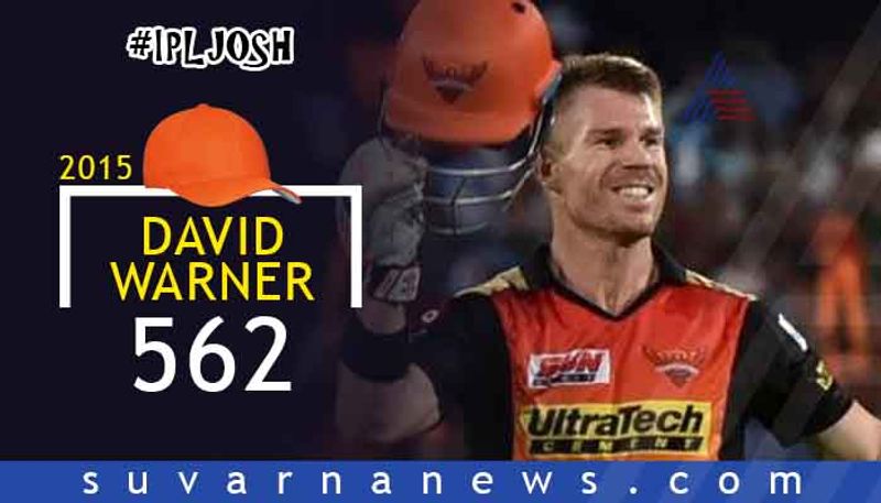 ಸನ್’ರೈಸರ್ಸ್ ಹೈದರಾಬಾದ್ ತಂಡದ ಸ್ಫೋಟಕ ಆರಂಭಿಕ ಬ್ಯಾಟ್ಸ್’ಮನ್ ಡೇವಿಡ್ ವಾರ್ನರ್ ಆಡಿದ 14 ಇನ್ನಿಂಗ್ಸ್’ಗಳಲ್ಲಿ 43ರ ಸರಾಸರಿಯಲ್ಲಿ 7 ಅರ್ಧಶತಕ ಸಹಿತ 562 ರನ್ ಬಾರಿಸಿದ್ದರು. ಟೂರ್ನಿಯಲ್ಲಿ ವಾರ್ನರ್ ಗರಿಷ್ಠ ರನ್ ಸಿಡಿಸಿದರೂ ತಂಡವನ್ನು ಫೈನಲ್’ಗೇರಿಸಲು ವಿಫಲವಾದರು.