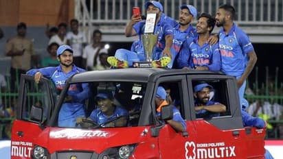 ಕೊಲಂಬೊ(ಸೆ.04): ಮಹೇಂದ್ರ ಸಿಂಗ್ ಧೋನಿ ವೃತ್ತಿ ಜೀವನದ ಆರಂಭದ ದಿನಗಳಲ್ಲಿ ಯಾರಿಗೆ ಬೈಕ್ ಬಹುಮಾನವಾಗಿ ಸಿಕ್ಕರು ಅವರನ್ನು ಕೂರಿಸಿಕೊಂಡು ಮೈದಾನದಲ್ಲೇ ಜಾಲಿ ರೈಡ್ ಹೋಗಿದ್ದನ್ನು ನೋಡಿದ್ದು ಈಗ ಇತಿಹಾಸ. ಆದರೆ ಈಗ ಹೊಸ ವಿಷ್ಯಾ ಏನಪ್ಪ ಅಂದ್ರೆ ಜಸ್'ಪ್ರೀತ್ ಬುಮ್ರಾ ಲಂಕಾ ವಿರುದ್ಧ ಭರ್ಜರಿ ಪ್ರದರ್ಶನ ತೋರಿ 15 ವಿಕೆಟ್ ಕಬಳಿಸಿ ಸರಣಿ ಶ್ರೇಷ್ಠ ಪ್ರಶಸ್ತಿಯಾಗಿ ಕಾರನ್ನು ಗೆದ್ದುಕೊಂಡಿದ್ದರು. ಬುಮ್ರಾಗೆ ಕಾರಿನ ಕೀ ಸಿಗುತ್ತಿದ್ದಂತೆ ಎಂ.ಎಸ್.ಧೋನಿ, ಸಹ ಆಟಗಾರರನ್ನೆಲ್ಲಾ ಕೂರಿಸಿಕೊಂಡು ಮೈದಾನದ ಸುತ್ತ ಕಾರ್'ನಲ್ಲಿ ಸುತ್ತಾಡಿದರು.