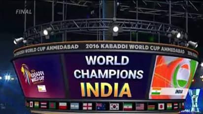 ಮುಂಬೈ(ಅ.23): ಅಹಮದಬಾದ್ನಲ್ಲಿ ನಡೆದ ಕಬಡ್ಡಿ ವಿಶ್ವಕಪ್ ಫೈನಲ್ನಲ್ಲಿ ಇರಾನ್ ವಿರುದ್ಧ ಭಾರತ ತಂಡ 38-29 ಅಂಕಗಳಿಂದ ಭರ್ಜರಿ ಜಯ ದಾಖಲಿಸಿತು.