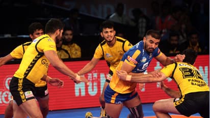 ಮುಂಬೈ(ಆ.31): ಸಾಕಷ್ಟು ರೋಚಕತೆಯಿಂದ ಕೂಡಿದ್ದ ತೆಲುಗುಟೈಟಾನ್ಸ್ ಹಾಗೂ ತಮಿಳ್ ತಲೈವಾಸ್ ನಡುವಿನ ಪಂದ್ಯದಲ್ಲಿ ಸಂಘಟಿತ ಪ್ರದರ್ಶನ ತೋರಿದ ರಾಹುಲ್ ಚೌಧರಿ ಪಡೆ 33-28 ಅಂಕಗಳ ಅಂತರದಿಂದ ಜಯಭೇರಿ ಬಾರಿಸಿದೆ.