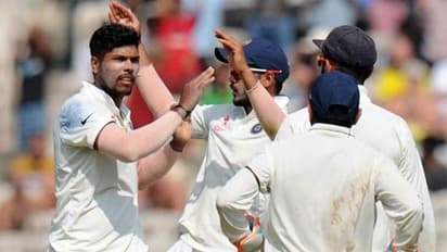 ಭಾರತದ ಪರ ಉಮೇಶ್ ಯಾದವ್ 4 ವಿಕೆಟ್ ಪಡೆದರೆ, ಅಶ್ವಿನ್ ಹಾಗೂ ಜಡೇಜಾ ತಲಾ ಎರಡು ವಿಕೆಟ್ ಹಂಚಿಕೊಂಡರು. ಇನ್ನು ಯುವ ಸ್ಪಿನ್ನರ್ ಜಯಂತ್ ಯಾದವ್ ಒಂದು ವಿಕೆಟ್ ತಮ್ಮ ಬುಟ್ಟಿಗೆ ಹಾಕಿಕೊಂಡರು.