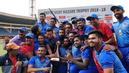 ಬೆಂಗಳೂರು(ಅ.20): ವಿಜಯ್ ಹಜಾರೆ ಟೂರ್ನಿ ರೋಚಕ ಪಂದ್ಯದೊಂದಿಗೆ ಅಂತ್ಯಗೊಂಡಿದೆ. ದೆಹಲಿ ವಿರುದ್ಧದ ಫೈನಲ್ ಪಂದ್ಯದಲ್ಲಿ ಮುಂಬೈ 4 ವಿಕೆಟ್ ಗೆಲುವು ದಾಖಲಿಸಿತು. ಈ ಮೂಲಕ 2018ರ ವಿಜಯ್ ಹಜಾರೆ ಟ್ರೋಫಿ ಗೆದ್ದುಕೊಂಡಿತು.