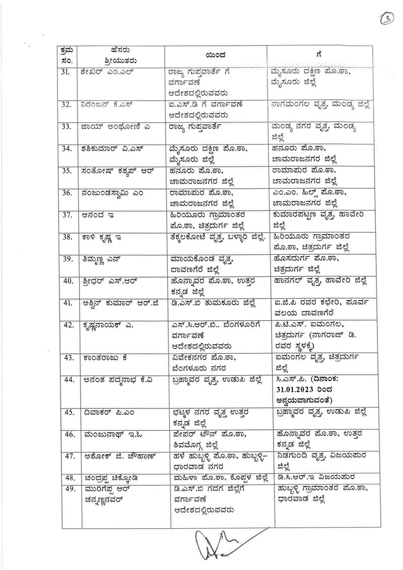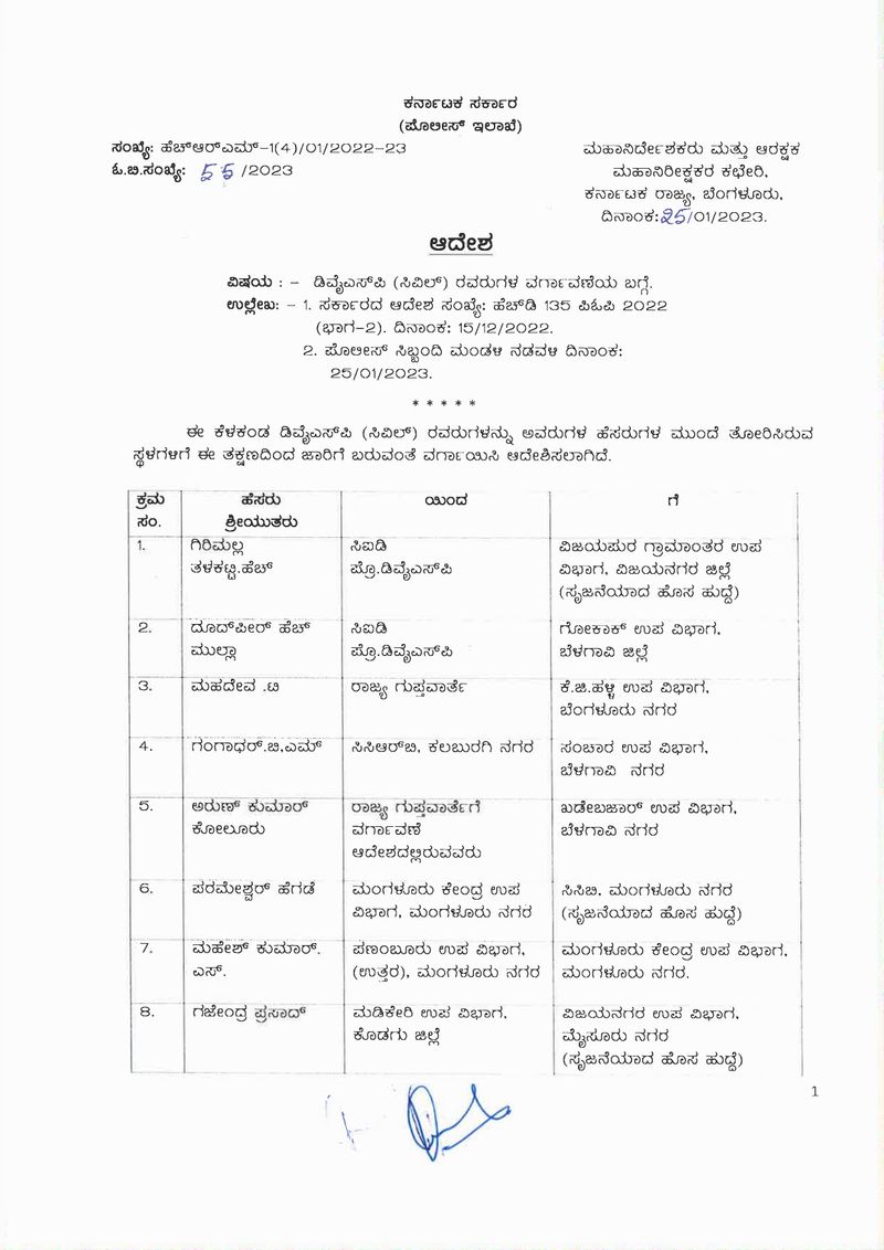 ವರ್ಗಾವಣೆಗೊಂಡಿರುವ 23 ಡಿವೈಎಸ್ಪಿ ಅಧಿಕಾರಿಗಳು: