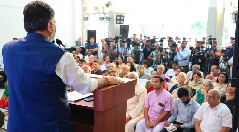 ಬೆಂಗಳೂರು (ಅ.1) : ಬೆಂಗಳೂರಿನ ಚಿತ್ರಕಲಾ ಪರಿಷತ್ ನಲ್ಲಿ ಇಂದು ಮಾಜಿ ಮುಖ್ಯಮಂತ್ರಿ, ಹಿರಿಯ ರಾಜಕಾರಣಿ ಎಸ್ಎಂ ಕೃಷ್ಣ ಅವರ ಜೀವನಗಾಥೆಯ 'ನೆಲದ ಸಿರಿ' ಪುಸ್ತಕ ಬಿಡುಗಡೆ ಕಾರ್ಯಕ್ರಮದಲ್ಲಿ ಡಿಸಿಎಂ ಡಿಕೆ ಶಿವಕುಮಾರ ಭಾಗಿಯಾದರು.