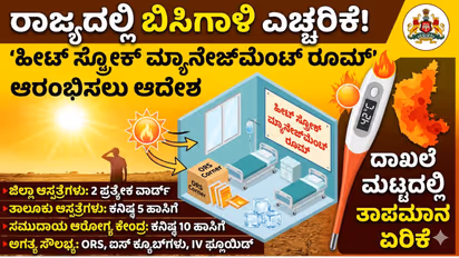 ಬೆಂಗಳೂರು (ಏ.24): ರಾಜ್ಯದಾದ್ಯಂತ ತಾಪಮಾನವು ದಾಖಲೆ ಮಟ್ಟದಲ್ಲಿ ಏರಿಕೆಯಾಗುತ್ತಿದ್ದು, ಬಿಸಿಗಾಳಿ (Heat Wave) ಮತ್ತು ಅತಿಯಾದ ಉಷ್ಣಾಂಶದಿಂದ (Extreme Heat) ಸಾರ್ವಜನಿಕರು ಹೈರಾಣಾಗುತ್ತಿದ್ದಾರೆ. ಈ ಹಿನ್ನೆಲೆಯಲ್ಲಿ ಉಂಟಾಗಬಹುದಾದ ಆರೋಗ್ಯ ಸಮಸ್ಯೆಗಳನ್ನು ಎದುರಿಸಲು ಮತ್ತು ತಕ್ಷಣದ ಚಿಕಿತ್ಸೆ ನೀಡಲು ರಾಜ್ಯ ಆರೋಗ್ಯ ಮತ್ತು ಕುಟುಂಬ ಕಲ್ಯಾಣ ಇಲಾಖೆಯು ಮಹತ್ವದ ಕ್ರಮ ಕೈಗೊಂಡಿದೆ. ರಾಜ್ಯದ ಎಲ್ಲಾ ಜಿಲ್ಲಾ, ತಾಲೂಕು ಮತ್ತು ಸಮುದಾಯ ಆರೋಗ್ಯ ಕೇಂದ್ರಗಳಲ್ಲಿ ಪ್ರತ್ಯೇಕವಾಗಿ 'ಹೀಟ್ ಸ್ಟ್ರೋಕ್ ಮ್ಯಾನೇಜ್ಮೆಂಟ್ ರೂಮ್' (Heat Stroke Management Room) ಗಳನ್ನು ಆರಂಭಿಸಲು ಕಟ್ಟುನಿಟ್ಟಿನ ಆದೇಶ ಹೊರಡಿಸಿದೆ.