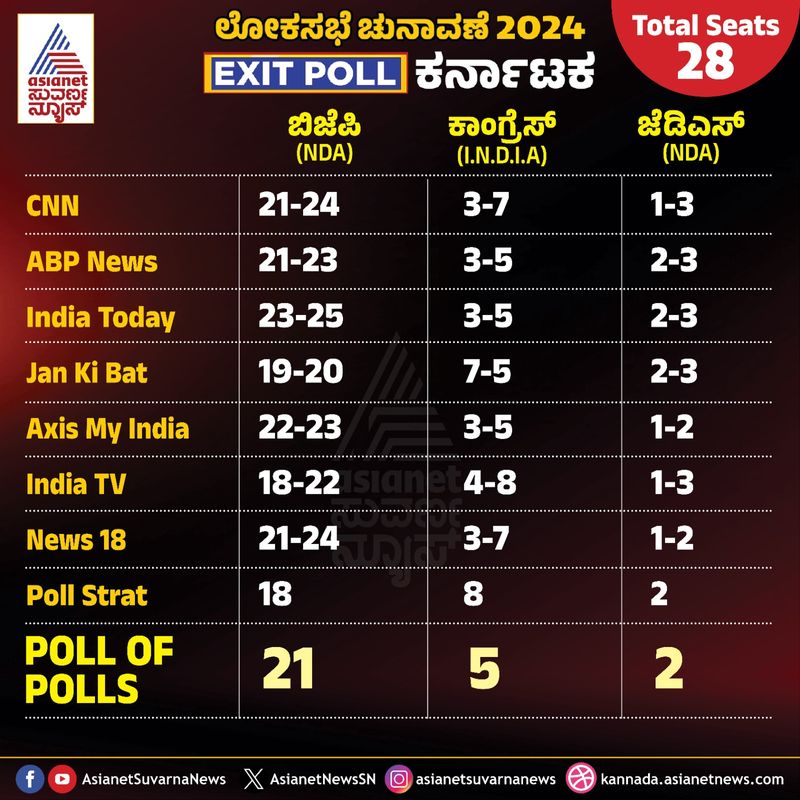 ಕರ್ನಾಟಕದಲ್ಲಿ 2024ರ ಲೋಕಸಭಾ ಚುನಾವಣೆ ಎರಡು ಹಂತದಲ್ಲಿ ನಡೆದಿತ್ತು. ಏಪ್ರಿಲ್ 26ಕ್ಕೆ ದಕ್ಷಿಣ ಕರ್ನಾಟಕ ಹಾಗೂ ಮೇ 7ಕ್ಕೆ ಉತ್ತರ ಕರ್ನಾಟಕದಲ್ಲಿ ಎಲೆಕ್ಷನ್ ನಡೆದಿತ್ತು. ಒಟ್ಟು 28 ಲೋಕಸಭಾ ಕ್ಷೇತ್ರದಲ್ಲಿ ಬಿಜೆಪಿ 25 ಸ್ಥಾನಗಳಲ್ಲಿ ಸ್ಪರ್ಧೆ ಮಾಡಿದ್ದರೆ, ಮೈತ್ರಿ ಪಕ್ಷ ಜೆಡಿಎಸ್ಗೆ ಕೋಲಾರ, ಹಾಸನ ಹಾಗೂ ಮಂಡ್ಯ ಕ್ಷೇತ್ರವನ್ನು ಬಿಟ್ಟುಕೊಟಿತ್ತು. ಗ್ಯಾರಂಟಿಯ ಬಲದಲ್ಲಿ 20 ಸ್ಥಾನಗಳ ಗುರಿ ಇರಿಸಿಕೊಂಡಿರುವ ಕಾಂಗ್ರೆಸ್ ಎಲ್ಲಾ 28 ಕ್ಷೇತ್ರದಲ್ಲೂ ಸ್ಪರ್ಧೆ ಮಾಡಿದೆ. ಎರಡೂ ಹಂತಗಳಲ್ಲಿ ಒಟ್ಟಾರೆ 70.64ರಷ್ಟು ಮತದಾನವಾಗಿದೆ. ಬೆಂಗಳೂರು ಗ್ರಾಮಾಂತರದಲ್ಲಿ ಡಿಕೆ ಸುರೇಶ್ ಹಾಗೂ ಜಯದೇವ ಹೃದ್ರೋಗ ಆಸ್ಪತ್ರೆಯ ಮಾಜಿ ನಿರ್ದೇಶಕ ಡಾ. ಮಂಜುನಾಥ್ ಅವರ ಕದನ ಕುತೂಹಲ ಕೆರಳಿಸಿದೆ. ಅದರೊಂದಿಗೆ ಬೆಂಗಳೂರು ದಕ್ಷಿಣದಲ್ಲಿ ಸೌಮ್ಯ ರೆಡ್ಡಿ, ಹಾಸನದಲ್ಲಿ ಅತ್ಯಾಚಾರ ಆರೋಪಿ ಪ್ರಜ್ವಲ್ ರೇವಣ್ಣ, ಮಂಡ್ಯದಲ್ಲಿ ಎಚ್ಡಿ ಕುಮಾರಸ್ವಾಮಿ, ಶಿವಮೊಗ್ಗದಲ್ಲಿ ಬಿವೈ ರಾಘವೇಂದ್ರ, ಬೆಂಗಳೂರು ಉತ್ತರದಲ್ಲಿ ಶೋಭಾ ಕರಂದ್ಲಾಜೆ ರಿಸಲ್ಟ್ ಬಗ್ಗೆ ಎಲ್ಲರ ಗಮನ ಇರಲಿದೆ. ಎಕ್ಸಿಟ್ ಪೋಲ್ನಲ್ಲಿ ಬಿಜೆಪಿ ಪರವಾಗಿ ಒಲವು ವ್ಯಕ್ತವಾಗಿದ್ದರೂ, ಕಾಂಗ್ರೆಸ್ ಕನಿಷ್ಠ 14-15 ಸೀಟ್ ಗೆಲ್ಲುವ ನಿರೀಕ್ಷೆಯಲ್ಲಿದೆ.