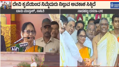ಮೈಸೂರು (ಸೆ.22): ನಮ್ಮ ಸಂಸ್ಕೃತಿ ನಮ್ಮ ಬೇರು, ಸೌಹಾರ್ಧ ನಮ್ಮ ಶಕ್ತಿ, ಆರ್ಥಿಕತೆಯೇ ನಮ್ಮ ರೆಕ್ಕೆ, ವಿಶ್ವಕ್ಕೆ ಶೈಕ್ಷಣಿಕವಾಗಿ, ಆರ್ಥಿಕವಾಗಿ, ಔದ್ಯೋಗಿಕವಾಗಿ ಭಾರತದ ನೆಲೆಯಲ್ಲಿ ನಮ್ಮ ಯುವ ಶಕ್ತಿಯೊಂದಿಗೆ ಸೇರಿ ಮಾನವೀಯ ಮೌಲ್ಯಗಳ ಪ್ರೀತಿಯ ಹೊಸ ಸಮಾಜವನ್ನು ಕಟ್ಟೋಣ. ಅದರಲ್ಲಿ ಎಲ್ಲರಿಗೂ ಸಮಪಾಲು, ಸಮಬಾಳು ಇರಲಿ. ನಮ್ಮ ಬಾಬಾ ಸಾಹೇಬ್ ಅಂಬೇಡ್ಕರ್ ಅವರ ಒಂದು ಚಿಗುರು ನಮ್ಮ ಎದೆಯಲ್ಲಿ ಒಡೆಯಲಿ ಎಂದು ಮೈಸೂರು ದಸರಾ ಉದ್ಘಾಟನೆ ಮಾಡಿದ ಹಾಗೂ ಬುಕರ್ ಪ್ರಶಸ್ತಿ ವಿಜೇತೆ ಬಾನು ಮುಷ್ತಾಕ್ ಹೇಳಿದರು.