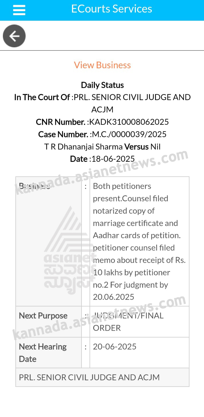 ವಿಚ್ಛೇದನದ ಬಗ್ಗೆ ಅಧಿಕೃತವಾಗಿ ಕೋರ್ಟ್ನ ದಾಖಲೆಗಳೂ ಸಿಕ್ಕಿದ್ದು, ಜೂನ್ 12 ರಂದು ಇವರು ವಿಚ್ಛೇದನಕ್ಕೆ ಅರ್ಜಿ ಸಲ್ಲಿಕೆ ಮಾಡಿದ್ದಾರೆ. ವಿಚ್ಛೇದನಕ್ಕೆ ಕಾರಣ ಏನು ಅನ್ನೋದು ಇನ್ನೂ ಸ್ಪಷ್ಟವಾಗಿಲ್ಲ. ಆದರೆ, ಸೋಶಿಯಲ್ ಮೀಡಿಯಾದಲ್ಲಿ ಸಖತ್ ಆಕ್ಟೀವ್ ಆಗಿದ್ದ ಅಖಿಲಾ ಪಜಿಮಣ್ಣು ತಮ್ಮ ಖಾತೆಯಿಂದ ಗಂಡ ಧನಂಜಯ ಶರ್ಮ ಅವರಿದ್ದ ಎಲ್ಲಾ ಫೋಟೋ ವಿಡಿಯೋಗಳನ್ನು ಡಿಲೀಟ್ ಮಾಡಿದ್ದಾರೆ.