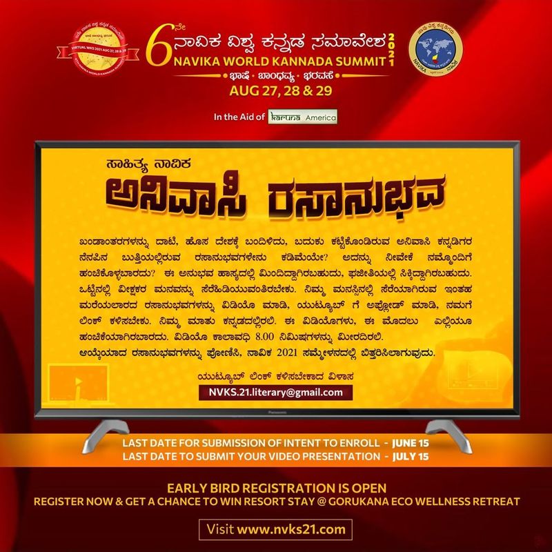 ಕವನವನ್ನು ವಾಚನ ಮಾಡಿ NVKS.21.literary@gmail.com ಗೆ ಕಳುಹಿಸಬೇಕು . ಅನಿವಾಸಿ ರಸಾನುಭವ ಹೆಸರಿನ ಸ್ಪರ್ಧೆಗೆ ನಿಮ್ಮ ನೆನಪಿನ ಬುತ್ತಿಯ ಕವನ ಹಂಚಿಕೊಳ್ಳಬಹುದು.