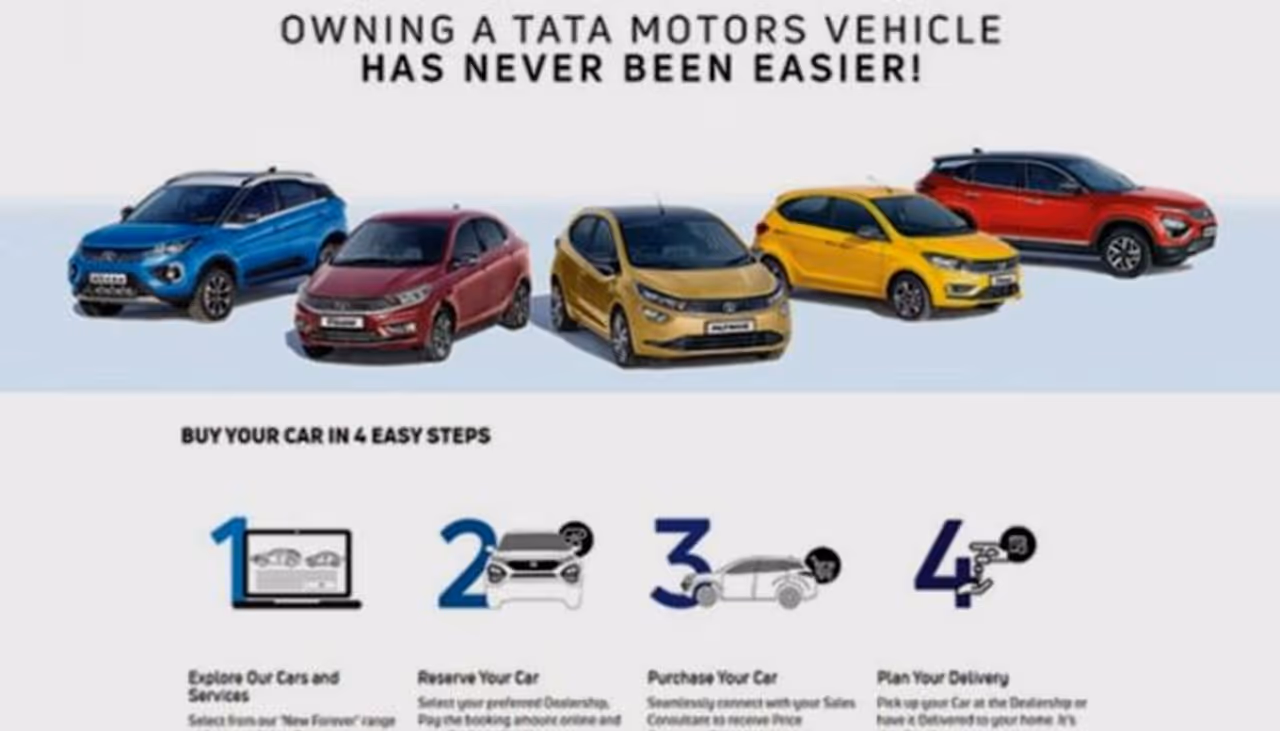 ಟಾಟಾ ಮೋಟಾರ್ಸ್ನ ಗ್ರಾಹಕರು ವಿಚಾರಣೆ ಮಾಡಬಹುದು, ಟೆಸ್ಟ್ ಡ್ರೈವ್ಗೆ ವಿನಂತಿಸಬಹುದು, ಬುಕಿಂಗ್ ಮಾಡಬಹುದು ಮತ್ತು ಇತ್ತೀಚೆಗೆ ಪ್ರಾರಂಭಿಸಲಾದ ಎಂಡ್-ಟು-ಎಂಡ್ ಆನ್ಲೈನ್ ಮಾರಾಟ ವೇದಿಕೆ ‘ಕ್ಲಿಕ್ ಟು ಡ್ರೈವ್' ನ ಮೂಲಕ ತಮ್ಮ ಆಯ್ಕೆಯ ಕಾರನ್ನು ಖರೀದಿಸಲು ಅವರ ಆದ್ಯತೆಯ ಧನಸಹಾಯದ ಆಯ್ಕೆಯನ್ನು ಅವರ ಮನೆಗಳಿಂದಲೇ ಸುರಕ್ಷಿತವಾಗಿ ಮತ್ತು ಆರಾಮವಾಗಿ ಆಯ್ಕೆ ಮಾಡಬಹುದು.