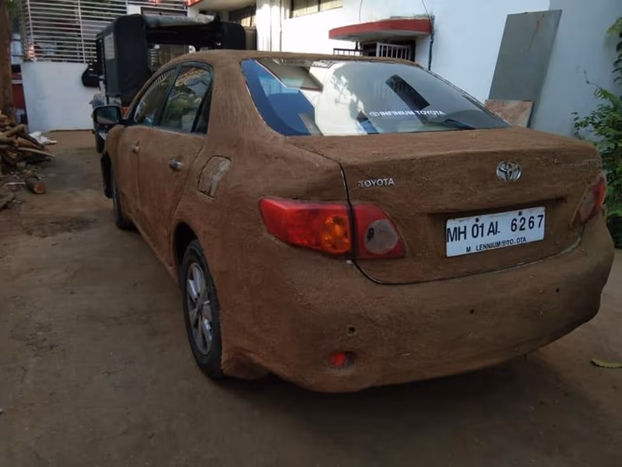 ಮುಂಬೈ(ಮೇ.20): ಕಾರು ಖರೀದಿಸಿದ ಬಳಿಕ ಮಾಡಿಫೈ ಮಾಡೋದು ಸಹಜ. ಆದರೆ ಇದು ಮಾಡಿಫೈ ಮಾಡಿದ ಕಾರಲ್ಲ. ಈ ಕಾರಿನ ಬಣ್ಣ ಕೂಡ ಬದಲಾಯಿಸಿಲ್ಲ. ಮಾಲೀಕನ ಹೊಸ ಐಡಿಯಾ ಇದೀಗ ವಿಶ್ವದಲ್ಲೇ ಭಾರಿ ಚರ್ಚೆಯಾಗುತ್ತಿದೆ. ಟೊಯೊಟಾ ಕೊರೋಲಾ ಅಲ್ಟೀಸ್ ಕಾರಿಗೆ ಸೆಗಣಿ ಮೆತ್ತಲಾಗಿದೆ. ಬಿಳಿ ಬಣ್ಣದ ಕೊರೊಲಾ ಅಲ್ಟೀಸ್ ಕಾರು ಇದೀಗ ಕಂದು ಬಣ್ಣದಲ್ಲಿ ಓಡಾಡುತ್ತಿದೆ.