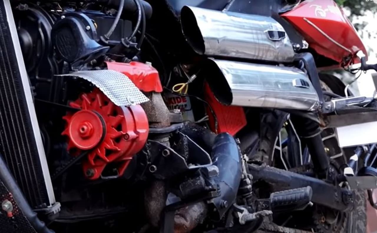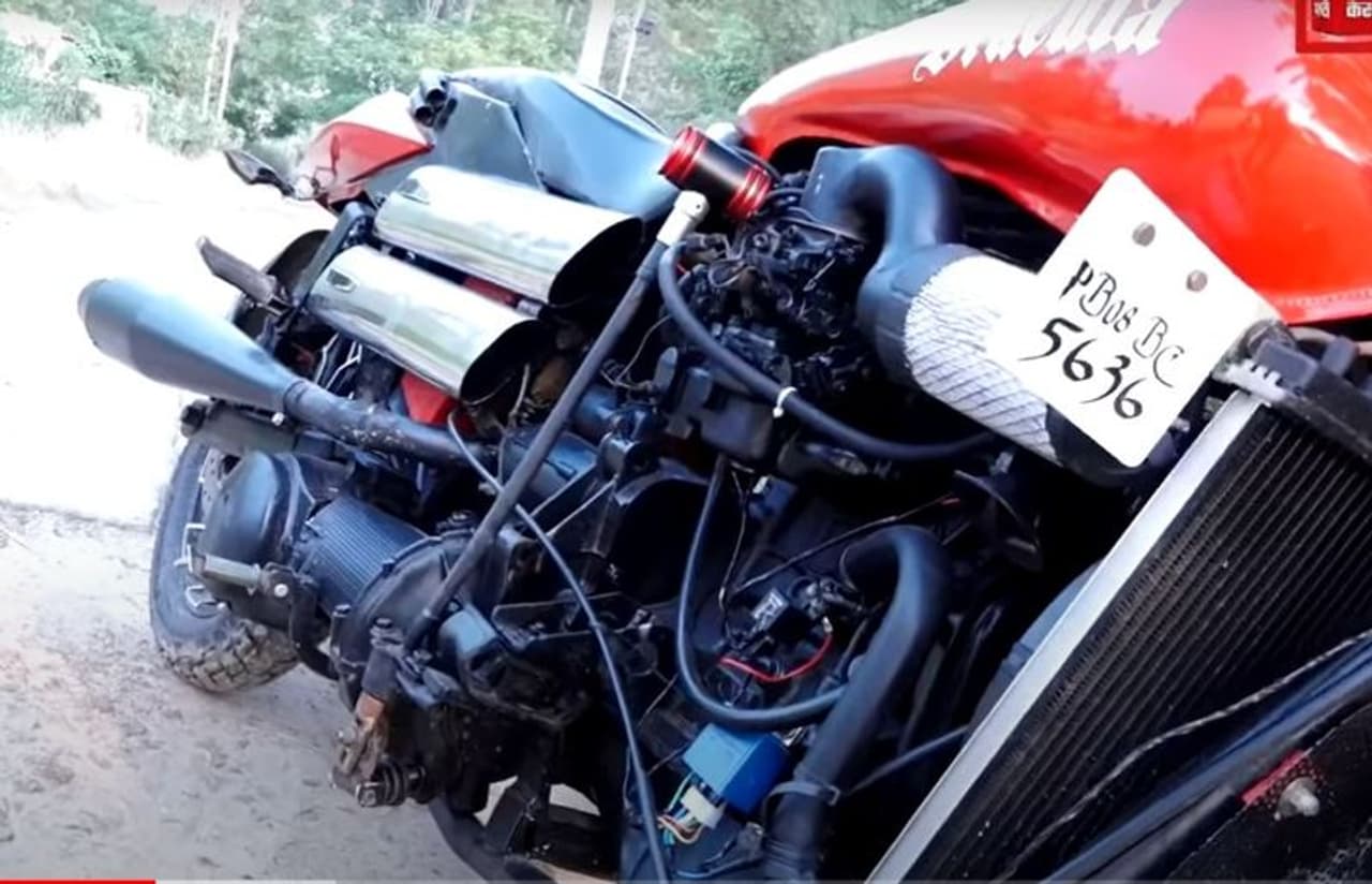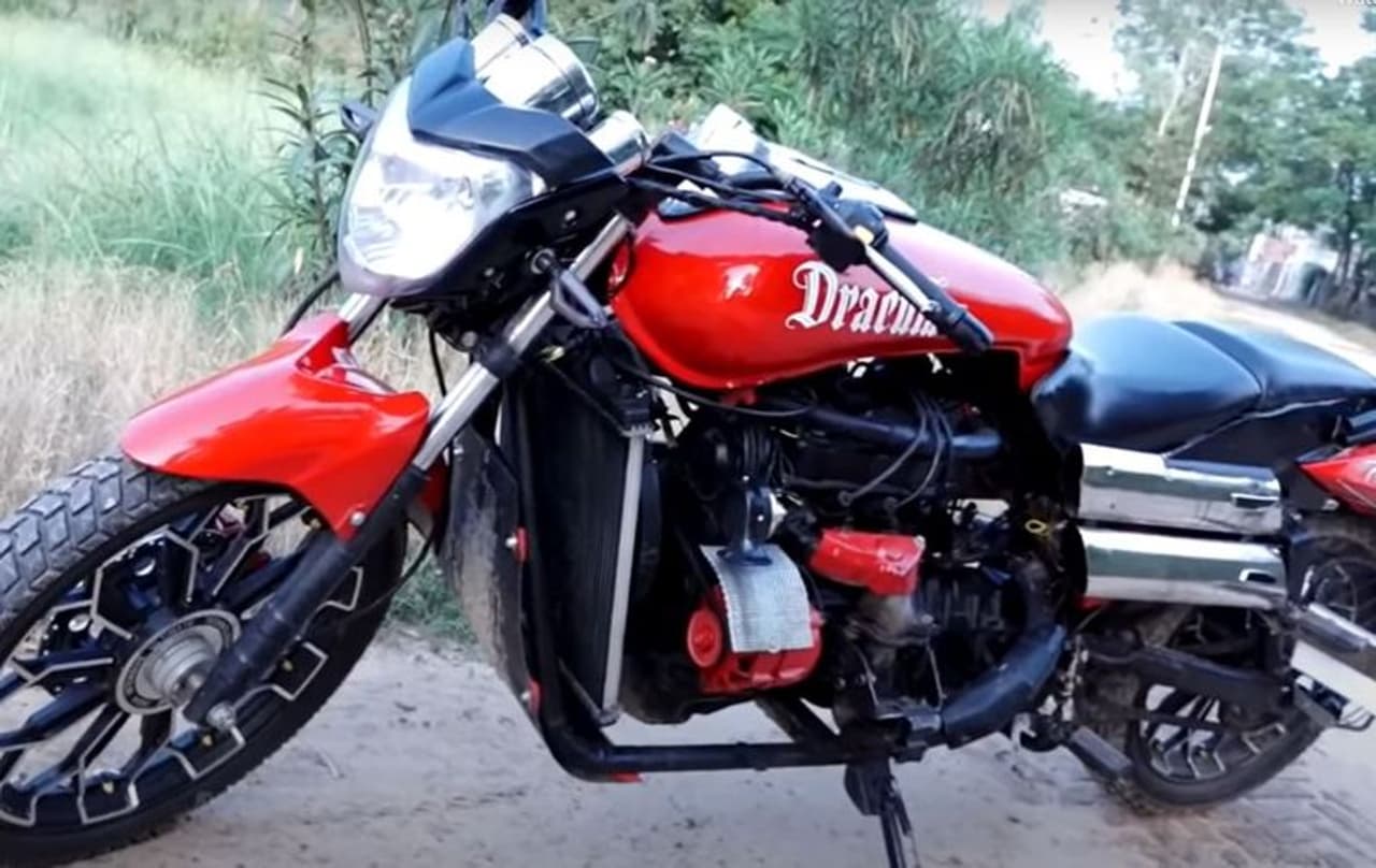 ಮಾರುತಿ 800 ಕಾರಿನ ಎಂಜಿನ್, ರಾಯಲ್ ಎನ್ಫೀಲ್ಡ್ ಬೈಕ್ನ ಬಿಡಿ ಭಾಗ, ಟಾಟಾ ಏಸ್ ಕಾರಿನ ಕ ಬಿಡಿ ಭಾಗ, ಯಮಹಾ FZ ಬೈಕ್ ಬಿಡಿ ಭಾಗಳನ್ನು ಬಳಸಿಕೊಂಡು ವಿನೂತನ ಬೈಕ್ ನಿರ್ಮಾಣ ಮಾಡಲಾಗಿದೆ. ಇಬ್ಬರು ಯುವಕರ ಪ್ರಯತ್ನದಿಂದ ಹೊಸ ಬೈಕ್ ಎಲ್ಲರ ಗಮನಸಳೆಯುತ್ತಿದೆ.