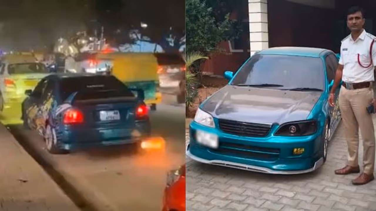 ಈಶಾನ್ಯ ಬೆಂಗಳೂರಿನ ಭಾರತೀಯ ಸಿಟಿಯಲ್ಲಿ ಕಾರನ್ನು ಪತ್ತೆ ಮಾಡಿದ ಪೊಲೀಸರು ಈ ಕಾರು ಭಾರತೀಯ ಮೋಟಾರು ವಾಹನ ಕಾಯ್ದೆಯ ಹಲವು ನಿಯಮಗಳನ್ನು ಉಲ್ಲಂಘಿಸಿರುವುದನ್ನು ಗಮನಿಸಿದ್ದಾರೆ. ಈ ಕಾರಿನ ಸೈಲೆನ್ಸರ್ನಿಂದ ಕೇಳಲಾಗದಷ್ಟು ಬಿರುಸಾದ ಸದ್ದಿನ ಜೊತೆ ಬೆಂಕಿ ಶೂಟ್ ಮಾಡಿದಂತೆ ಹೊರಬರುತ್ತಿತ್ತು. ಹೀಗಾಗಿ ಸಾರ್ವಜನಿಕರಿಗೆ ಇದೊಂದು ಬಹಳ ಗಂಭೀರವಾದ ಬೆಂಕಿಯ ಅಪಾಯವನ್ನು ಒಳಗೊಂಡಿತ್ತು ಎಂದು ಟ್ರಾಫಿಕ್ ಪೊಲೀಸ್ ಅಧಿಕಾರಿಯೊಬ್ಬರು ಹೇಳಿದ್ದಾರೆ.