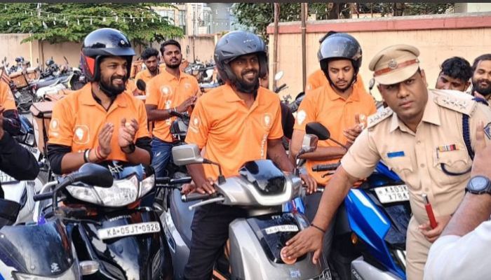 Bengaluru Traffic Police: ಈ ಕಾರ್ಯಕ್ರಮದಲ್ಲಿ 450 ಡೆಲಿವರಿ ಪಾಲುದಾರರಿಗೆ ಸುರಕ್ಷಿತ ಚಾಲನೆ, ಸಂಚಾರಿ ನಿಯಮ ಪಾಲನೆ ಮತ್ತು ತುರ್ತು ಸಂದರ್ಭಗಳಲ್ಲಿ ಕೈಗೊಳ್ಳಬೇಕಾದ ಕ್ರಮಗಳ ಕುರಿತು ತರಬೇತಿ ನೀಡಲಾಯಿತು.