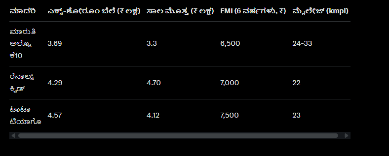ಬೆಲೆ: ಎಕ್ಸ್-ಶೋರೂಂ ₹4.29 ಲಕ್ಷದಿಂದ. ಬೇಸಿಕ್ ಮಾದರಿಗೆ ಸಾಲ ₹4.70 ಲಕ್ಷ (6 ವರ್ಷಗಳಿಗೆ EMI ಸುಮಾರು ₹7,000).