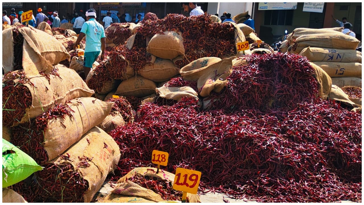 ಕಳೆದ ಗುರುವಾರವೂ ಮಾರುಕಟ್ಟೆಗೆ ಹೆಚ್ಚಿನ ಪ್ರಮಾಣದ ಮೆಣಸಿನಕಾಯಿ ಆವಕವಾಗಿರಲಿಲ್ಲ. ಆ ದಿನ ಕೇವಲ 45 ಸಾವಿರ ಚೀಲಗಳು ಮಾತ್ರ ಮಾರುಕಟ್ಟೆಗೆ ಬಂದಿದ್ದವು. ಸೋಮವಾರವೂ ನಿರೀಕ್ಷಿತ ಪ್ರಮಾಣಕ್ಕಿಂತ ಕಡಿಮೆ ಆವಕವಾಗಿದ್ದು, ಇತ್ತೀಚಿನ ದಿನಗಳಲ್ಲಿ ಮೆಣಸಿನಕಾಯಿ ಪೂರೈಕೆಯಲ್ಲಿ ಸ್ಥಿರತೆ ಇಲ್ಲದಿರುವುದು ಮಾರುಕಟ್ಟೆಯ ಮೇಲೆ ಪರಿಣಾಮ ಬೀರಿದೆ.