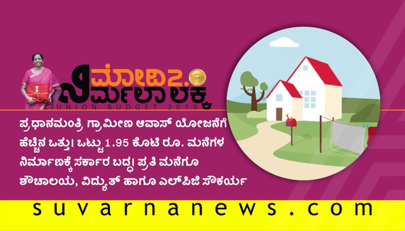 ಪ್ರತೀ ಮನೆಗೂ ಗ್ಯಾಸ್ ಕನೆಕ್ಷನ್, ಎಲ್ಲರಿಗೂ ವಿದ್ಯುತ್ ಸಂಪರ್ಕ, ರೈತ, ಬಡ, ಗ್ರಾಮೀಣ ಜನರಿಗೆ ಒತ್ತು. ಎಲ್ಲ ಗ್ರಾಮೀಣ ಭಾಗದ ಪ್ರತೀ ಕುಟುಂಬಕ್ಕೂ ಮೂಲ ಸೌಕರ್ಯಕ್ಕೆ ಒತ್ತು.
