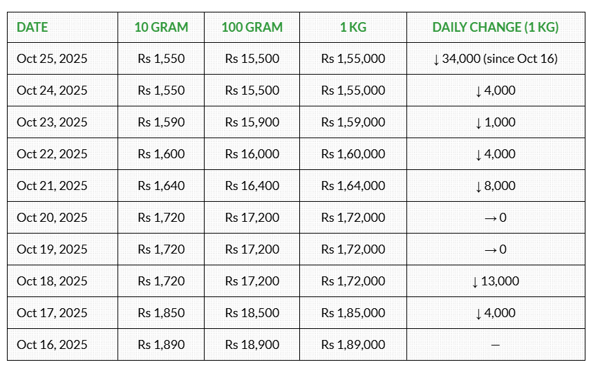 10 ದಿನದಲ್ಲಿ 1 ಕೆಜಿ ಬೆಳ್ಳಿ ಬೆಲೆಯಲ್ಲಿ 34 ಸಾವಿರ ಕುಸಿತ