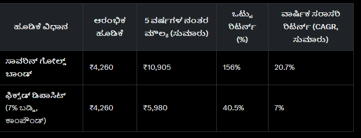 ಎಸ್ಜಿಬಿ vs ಎಫ್ಡಿ: ಲಾಭದ ಹೋಲಿಕೆ: ನೀವು ಮಾರ್ಚ್ 2020ರಲ್ಲಿ ₹4,260 ಹೂಡಿಕೆ ಮಾಡಿದ್ದರೆ, ಇಂದು ಏನಾಗುತ್ತಿತ್ತು? ಇಲ್ಲಿದೆ ಸರಳ ಲೆಕ್ಕಾಚಾರ:
