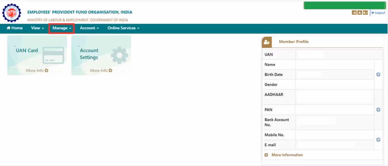 * ನಿಮ್ಮ UAN[ಯೂನಿವರ್ಸಲ್ ಅಕೌಂಟ್ ನಂಬರ್] ಹಾಗೂ ಪಾಸ್ ವರ್ಡ್ ಸಹಾಯದಿಂದ UAN ಅಕೌಂಟ್ ಗೆ ಲಾಗಿನ್ ಆಗಿ