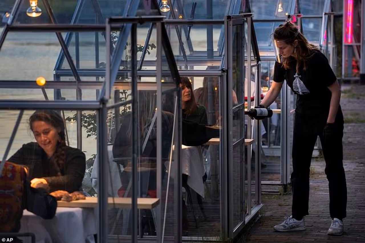 ಆಮ್ಸ್ಟ್ರಾಡಾಂ(ಮೇ.10); ಕೊರೋನಾ ವೈರಸ್ ಕಾರಣ ಬಂದ್ ಆಗಿದ್ದ ಬಹುತೇಕ ಸೇವೆಗಳು ಮತ್ತೆ ಆರಂಭಗೊಂಡಿದೆ. ಆದರೆ ಹೊಟೆಲ್, ರೆಸ್ಟೋರೆಂಟ್ ಇನ್ನು ಆರಂಭಗೊಂಡಿಲ್ಲ. ಸದ್ಯದ ಪರಿಸ್ಥಿತಿಯಲ್ಲಿ ತಿನಿಸುಗಳ ಮಜಾ ಸವಿಯುವ ಪರಿಸ್ಥಿತಿಯಲ್ಲಿ ಜನರಿಲ್ಲ. ಹಾಗಂತ ಬೇಸರ ಪಡುವ ಅಗತ್ಯವಿಲ್ಲ. ಇದೀಗ ರೆಸ್ಟೋರೆಂಟ್ ಒಂದು ಸಾಮಾಜಿಕ ಅಂತರ ಕಾಯ್ದುಕೊಳ್ಳುವ ಕ್ವಾರಂಟೈನ್ ಗ್ರೀನ್ಹೌಸ್ ಪರಿಚಯಿಸಿದೆ.