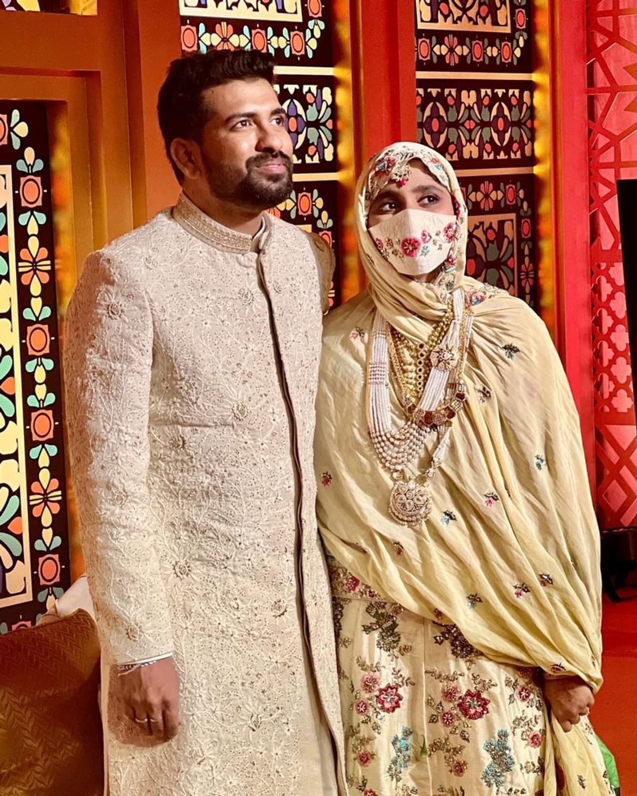 'ದೇವರ ಕೃಪೆ ಈ ದಂಪತಿಗಳ ಮೇಲೆ ಸದಾ ಇರಲಿ.ನಿಮ್ಮೆಲ್ಲರ ಪ್ರೀತಿ ಮತ್ತು ಶುಭ ಹಾರೈಕೆಗಳಿಗೆ ಧನ್ಯವಾದಗಳು'ಎಂದು ಫ್ಯಾಮಿಲಿ ಫೋಟೋ ಹಂಚಿಕೊಂಡಿದ್ದಾರೆ. ರೆಹೆಮಾನ್ ಪುತ್ರಿ ಮತ್ತು ಅಳಿಯ ಕ್ರೀಮ್ ಬಣ್ಣದ ಡ್ರೆಸ್ಗೆ ಕೆಂಪು ಬಣ್ಣದ ಹೂ ಮಾಲೆ ಧರಿಸಿದ್ದಾರೆ. ಪುತ್ರಿ ಖತೀಜಾ ಮ್ಯಾಚ್ ಆಗುವಂತ ಮಾಸ್ಕ್ ಧರಿಸಿದ್ದಾರೆ. ರೆಹಮಾನ್ ಮತ್ತು ಪತ್ನಿ ಮರೂನ್ ಶೇಡ್ನಲ್ಲಿ ಧರಿಸಿದ್ದಾರೆ. ಕೆಲವು ಮೂಲಗಳಿಂದ ತಿಳಿದು ಬಂದಿರುವ ಮಾಹಿತಿ ಪ್ರಕಾರ ರಿಯಾಸ್ದೀನಿ ಉದ್ಯಮಿ ಎನ್ನಲಾಗಿದೆ.