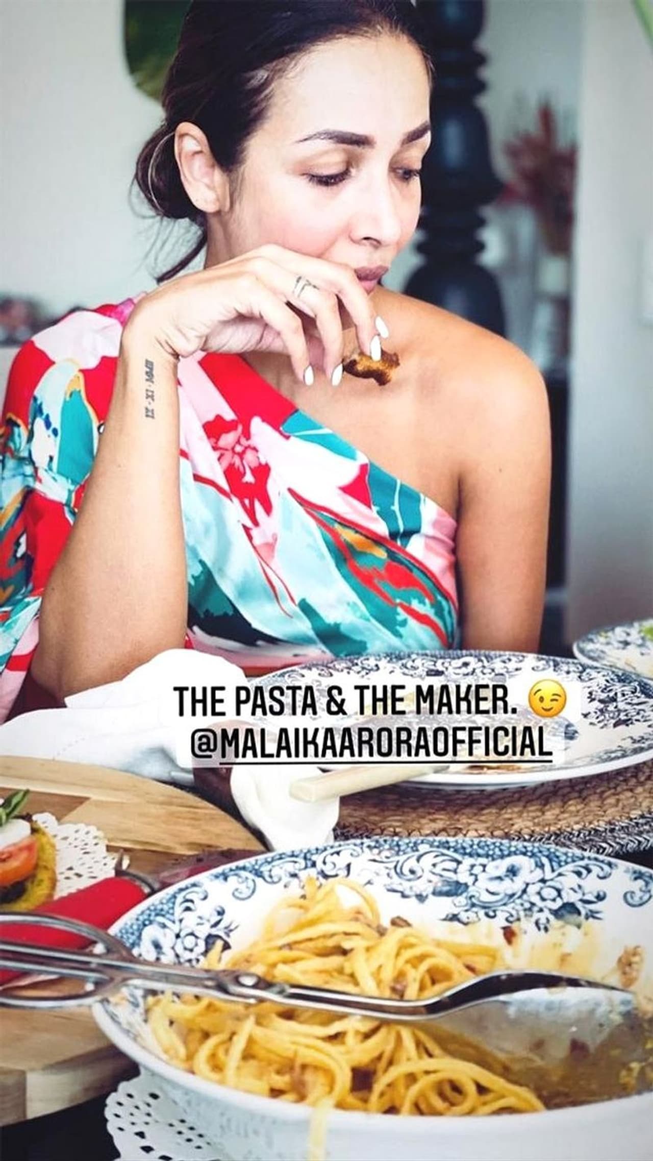 ಸೂಪರ್ ಇಟಾಲಿಯನ್ ಊಟಕ್ಕಾಗಿ ಅರ್ಜುನ್ ತನ್ನ ಗೆಳತಿ ಮಲೈಕಾ ಅವರಿಗೆ ಧನ್ಯವಾದ ಹೇಳಲು ಇನ್ಸ್ಟಾಗ್ರಾಮ್ ಸ್ಟೋರಿ ಅಪ್ಲೋಡ್ ಮಾಡಿದ್ದಾರೆ. ಮಲೈಕಾ ಲಂಚ್ ಟೈಂನ ಒಂದು ಸುಂದರ ಫೋಟೋವನ್ನು ಹಂಚಿಕೊಂಡ ಅವರು, 'ಪಾಸ್ತಾ ಮತ್ತು ಮೇಕರ್' ಎಂದು ಕ್ಯಾಪ್ಶನ್ ಕೊಟ್ಟಿದ್ದಾರೆ. ಮಲೈಕಾ ಸುಂದರವಾದ ಹೂವಿನ ಪ್ರಿಂಟ್ ಇರೋ ಕಫ್ತಾನ್ ಧರಿಸಿ ಕೂದಲು ಬನ್ ಮಾಡಿರೋದನ್ನು ಕಾಣಬಹುದು.