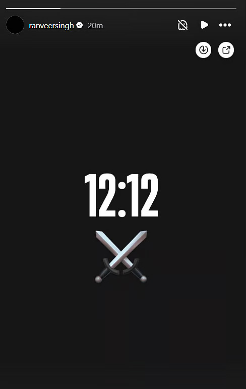 ಪೋಸ್ಟ್ ಅಳಿಸಲು ಕಾರಣವನ್ನು ರಣವೀರ್ ಸಿಂಗ್ ಸ್ಪಷ್ಟಪಡಿಸಿಲ್ಲ. ಆದರೆ ಅವರ ಇನ್ಸ್ಟಾ ಕಥೆ ಬಹಳಷ್ಟು ಹೇಳುತ್ತಿದೆ. ಈ ಕಥೆಯಲ್ಲಿ, ಅವರು ಸಮಯವನ್ನು 12:12 ಎಂದು ತೋರಿಸಿದ್ದಾರೆ. ಇದರೊಂದಿಗೆ, ಅವರು ಎರಡು ಕತ್ತಿಗಳು ಪರಸ್ಪರ ದಾಟುತ್ತಿರುವ ಎಮೋಜಿಯನ್ನು ಹಂಚಿಕೊಂಡಿದ್ದಾರೆ. ಈ ಕಥೆಯನ್ನು ನೋಡಿದ ಜನರು, ಎಲ್ಲೋ ರಣವೀರ್ ತಮ್ಮ ಮುಂಬರುವ ಚಿತ್ರಕ್ಕೆ ಸಂಬಂಧಿಸಿದ ಸುಳಿವನ್ನು ನೀಡುತ್ತಿದ್ದಾರೆ ಎಂದು ಊಹಿಸುತ್ತಿದ್ದಾರೆ. ಈ ಇನ್ಸ್ಟಾ ಕಥೆಯ ಮೂಲಕ, ರಣವೀರ್ 'ಉರಿ: ದಿ ಸರ್ಜಿಕಲ್ ಸ್ಟ್ರೈಕ್' ಖ್ಯಾತಿಯ ಆದಿತ್ಯ ಧರ್ ನಿರ್ದೇಶನದ ತಮ್ಮ ಆಕ್ಷನ್ ಪ್ಯಾಕ್ಡ್ ಚಿತ್ರ 'ಧುರಂಧರ್' ನ ಮೊದಲ ನೋಟದ ಬಗ್ಗೆ ಸುಳಿವು ನೀಡುತ್ತಿದ್ದಾರೆ ಎಂದು ನಂಬಲಾಗಿದೆ.