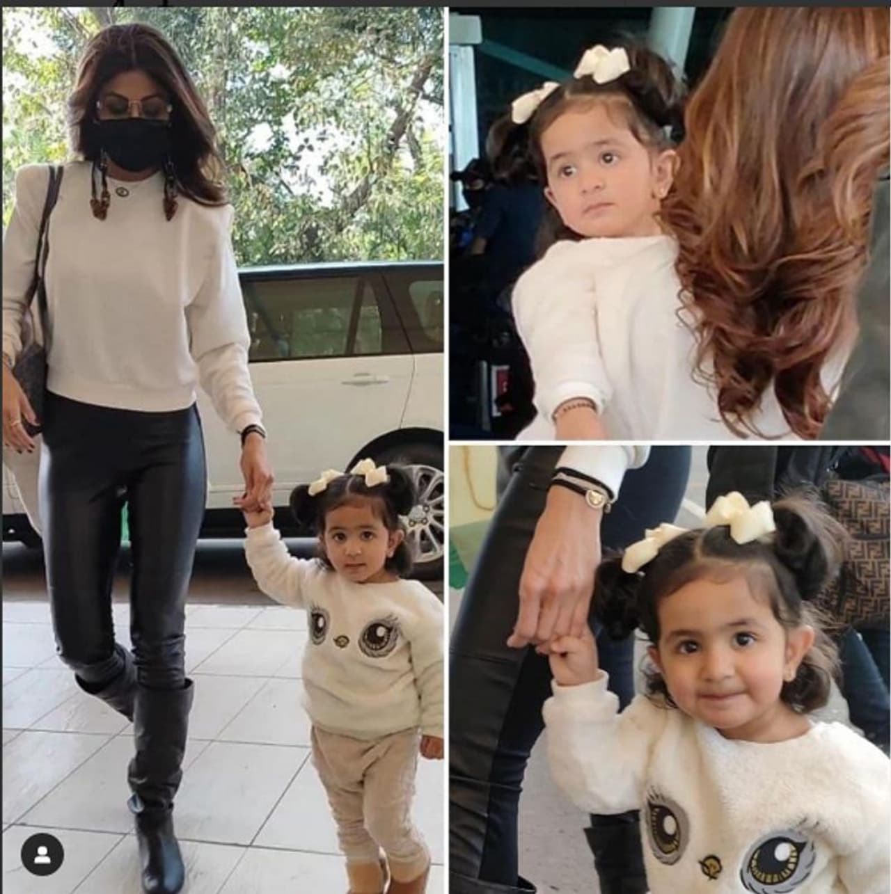 ಇತ್ತೀಚೆಗೆ ಶಿಲ್ಪಾ ಶೆಟ್ಟಿ ಕುಂದ್ರಾ (Shilpa Shetty Kundra) ಅವರು ತಮ್ಮ ಮಗಳು ಸಮಿಶಾ ಶೆಟ್ಟಿ ಕುಂದ್ರಾ (Shamisha Shetty Kundra) ಜೊತೆ ಮುಂಬೈ ವಿಮಾನ ನಿಲ್ದಾಣದಲ್ಲಿ ಕಾಣಿಸಿಕೊಂಡಿದ್ದರು. ತಾಯಿ-ಮಗಳ ಜೋಡಿ ಡೆಹ್ರಾಡೂನ್ಗೆ ಪ್ರಯಾಣಿಸುತ್ತಿದ್ದಾಗ ಪಾಪರಾಜಿಗಳ ಕ್ಯಾಮಾರಾಕ್ಕೆ ಸೆರೆ ಸಿಕ್ಕಿದ್ದಾರೆ. ಈ ಸಮಯದ ಕ್ಯೂಟ್ ವಿಡಿಯೋವೊಂದು ಇಂಟರ್ನೆಟ್ನಲ್ಲಿ ಸಖತ್ ವೈರಲ್ ಆಗಿತ್ತು. ಡಿಸೆಂಬರ್ 23, 2021 ರಂದು, ಶಿಲ್ಪಾ ಶೆಟ್ಟಿ ತಮ್ಮ ಮಗಳು ಸಮಿಶಾ ಶೆಟ್ಟಿ ಕುಂದ್ರಾ ಜೊತೆ ಮುಂಬೈ ವಿಮಾನ ನಿಲ್ದಾಣದಲ್ಲಿ ಕಾಣಿಸಿಕೊಂಡಿದ್ದಾರೆ.