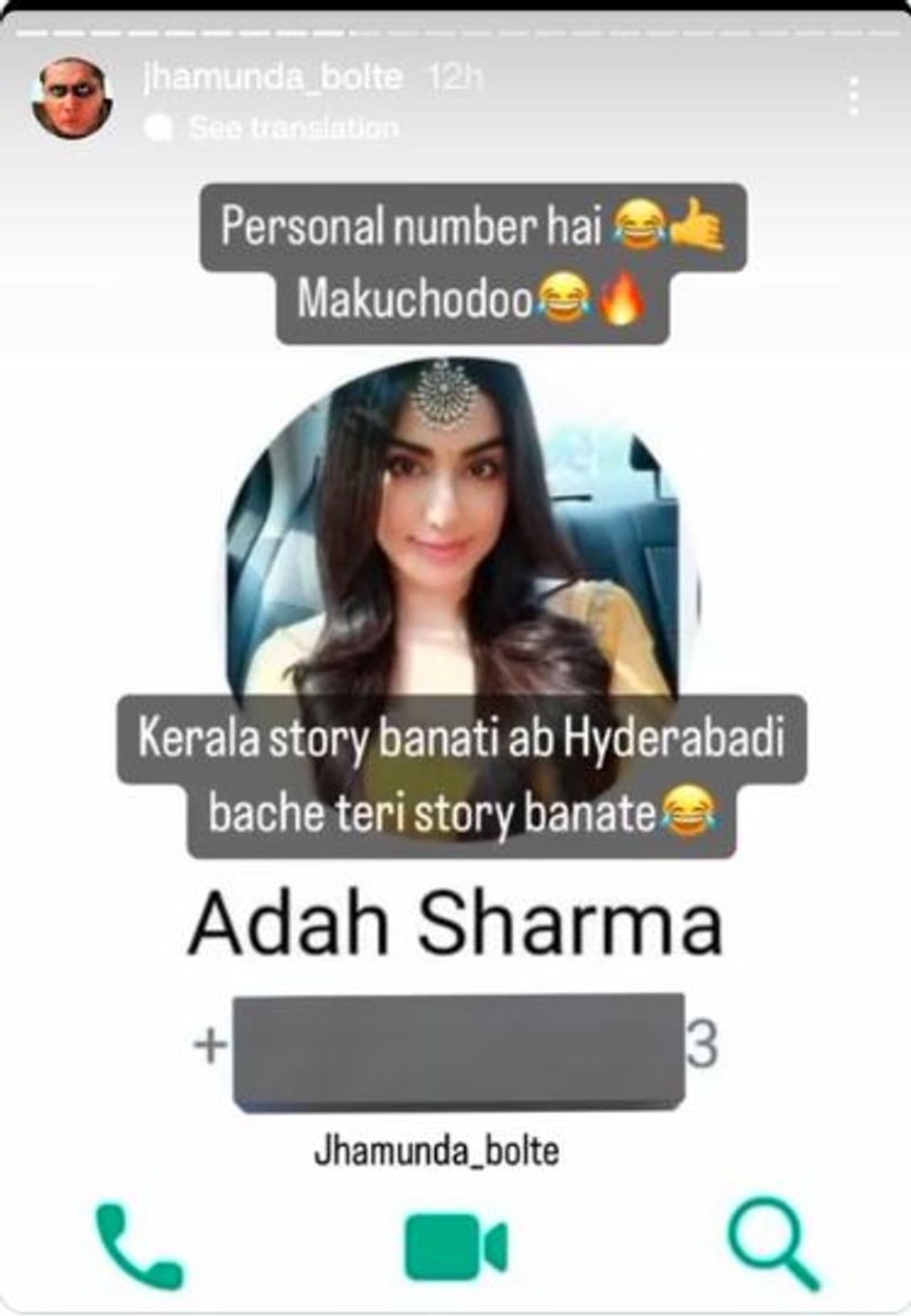 ಇನ್ಸ್ಟಾಗ್ರಾಂನಲ್ಲಿ Jhamunda_bolte ಎಂದು ಪೇಜ್ನಲ್ಲಿ ಅದಾ ಶರ್ಮಾ ಪರ್ಸನಲ್ ವಾಟ್ಸಪ್ ನಂಬರ್ ಲೀಕ್ ಆಗಿರುವುದು ಗಮನಕ್ಕೆ ಬಂದಿದೆ. ಮಾನಸಿಕವಾಗಿ ಅದಾ ಶರ್ಮಾಗೆ ಟಾರ್ಚರ್ ನೀಡುತ್ತಿದ್ದಾರೆ ಕೆಲ ವರ್ಗದ ಜನರು ಎಂದು ಟ್ವಿಟರ್ನಲ್ಲಿ ಡಾಕ್ಟರ್ ಗೌತಮ್ ಗುಹಾ ಟ್ವೀಟ್ ಮಾಡಿದ್ದಾರೆ.