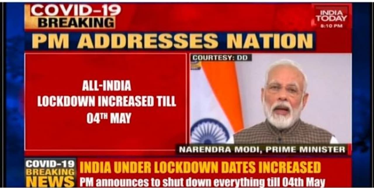 ಸ್ವತಃ ಪ್ರಧಾನಿ ನರೇಂದ್ರ ಮೋದಿಯೇ ಈ ಬಗ್ಗೆ ಘೋಷಿಸಿದ್ದಾರೆ ಎಂದು ಇಂಡಿಯಾ ಟುಡೇ ಸುದ್ದಿ ವಾಹಿನಿ ಹೆಸರಿನಲ್ಲಿ ಸುದ್ದಿಯೊಂದು ವೈರಲ್ ಆಗುತ್ತಿದೆ. ಅದರಲ್ಲಿ ‘ದೇಶವನ್ನು ಉದ್ದೇಶಿಸಿ ಪ್ರಧಾನಿ ಮೋದಿ ಭಾಷಣ’ ಹಾಗೂ ‘ಭಾರತದಾದ್ಯಂತ ಮೇ 4ರ ವರೆಗೆ ಲಾಕ್ಡೌನ್ ವಿಸ್ತರಣೆ’ ಎಂದಿದೆ.