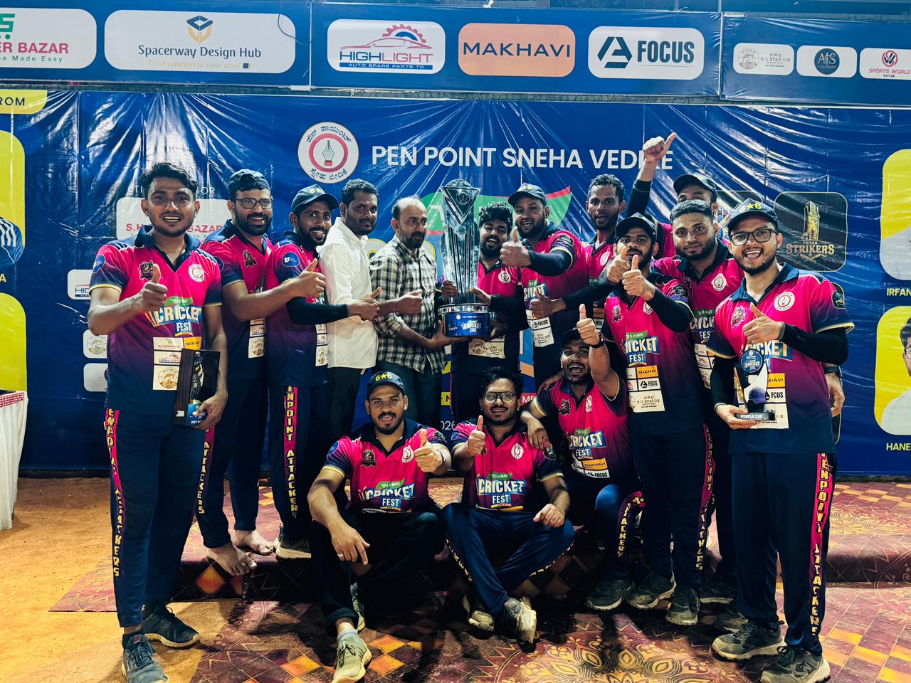 'ಪೆನ್ ಪಾಯಿಂಟ್ ಸ್ನೇಹ ವೇದಿಕೆ' ಆಯೋಜಿಸಿದ್ದ 5ನೇ ಆವೃತ್ತಿಯ ಕ್ರಿಕೆಟ್ ಫೆಸ್ಟ್ನಲ್ಲಿ ಎಮಾರ್ ಸ್ಟ್ರೈಕರ್ಸ್ ತಂಡವು ಚಾಂಪಿಯನ್ ಆಗಿ ಹೊರಹೊಮ್ಮಿದೆ. ಕಾಸರಗೋಡಿನ ಲಾರ್ಡ್ಸ್ ಮೈದಾನದಲ್ಲಿ ನಡೆದ ಫೈನಲ್ ಪಂದ್ಯದಲ್ಲಿ, ಅಟ್ಯಾಕರ್ಸ್ ತಂಡವನ್ನು ಸೋಲಿಸಿ ಎಮಾರ್ ಸ್ಟ್ರೈಕರ್ಸ್ ಚಾಂಪಿಯನ್ ಆಯಿತು.
