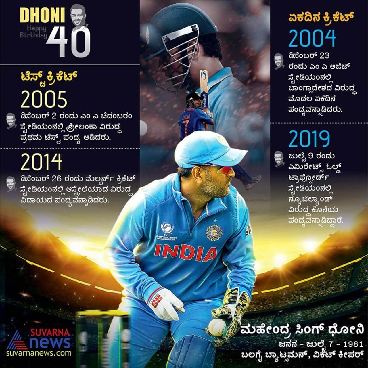 * ಕ್ರಿಕೆಟ್ ಕಂಡ ಅತ್ಯಂತ ಶ್ರೇಷ್ಠ ನಾಯಕ ಮಹೇಂದ್ರ ಸಿಂಗ್ ಧೋನಿಗೆ ಹುಟ್ಟುಹಬ್ಬದ ಸಂಭ್ರಮ* ಧೋನಿ ನಾಯಕತ್ವದಲ್ಲಿ ಮೂರೂ ವಿಶ್ವಕಪ್ ಗೆದ್ದ ಭಾರತ* ಕ್ಯಾಪ್ಟನ್ ಕೂಲ್ಗೆ ಶುಭ ಕೋರಿದ ಬಿಸಿಸಿಐ