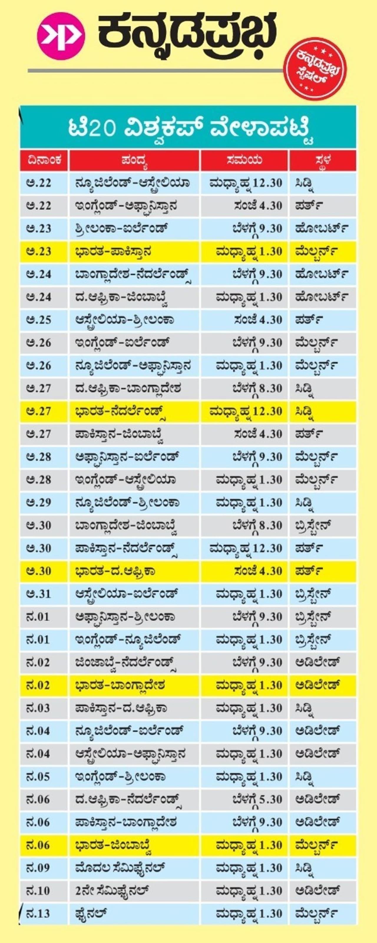 ಟಿ20 ವಿಶ್ವಕಪ್ ಟೂರ್ನಿಯ ಸಂಪೂರ್ಣ ವೇಳಾಪಟ್ಟಿ ಇಲ್ಲಿದೆ ನೋಡಿ