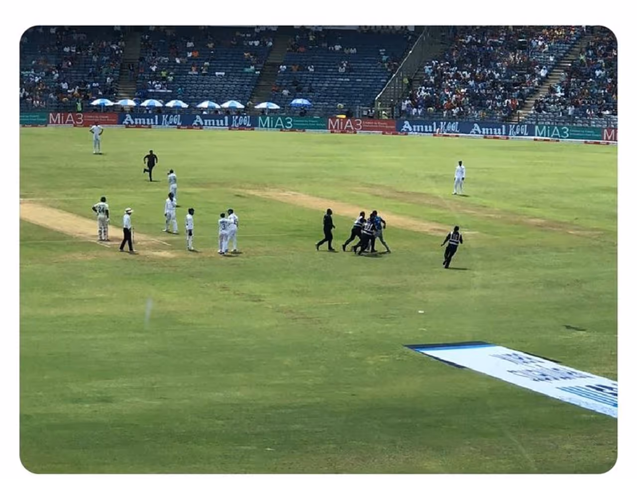 ಪುಣೆ ಟೆಸ್ಟ್ ಪಂದ್ಯದಲ್ಲಿ ರೋಹಿತ್ ಶರ್ಮಾ ಅಭಿಮಾನಿ, ಸೆಕ್ಯೂರಿಟಿ ನಿಯಮ ಉಲ್ಲಂಘಿಸಿ ಮೈದಾನದೊಳಕ್ಕೆ ಪ್ರವೇಶಿಸಿದ ಘಟನೆ ನಡೆದಿದೆ. ಈ ಘಟನೆಯಿಂದ ಟೀಂ ಇಂಡಿಯಾ ಹಾಗೂ ಸೆಕ್ಯೂರಿಟಿ ಗಾರ್ಡ್ಗಳು ಒಂದು ಕ್ಷಣ ಬೆಚ್ಚಿ ಬಿದ್ದರು.