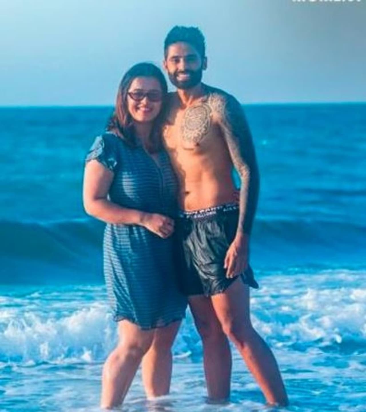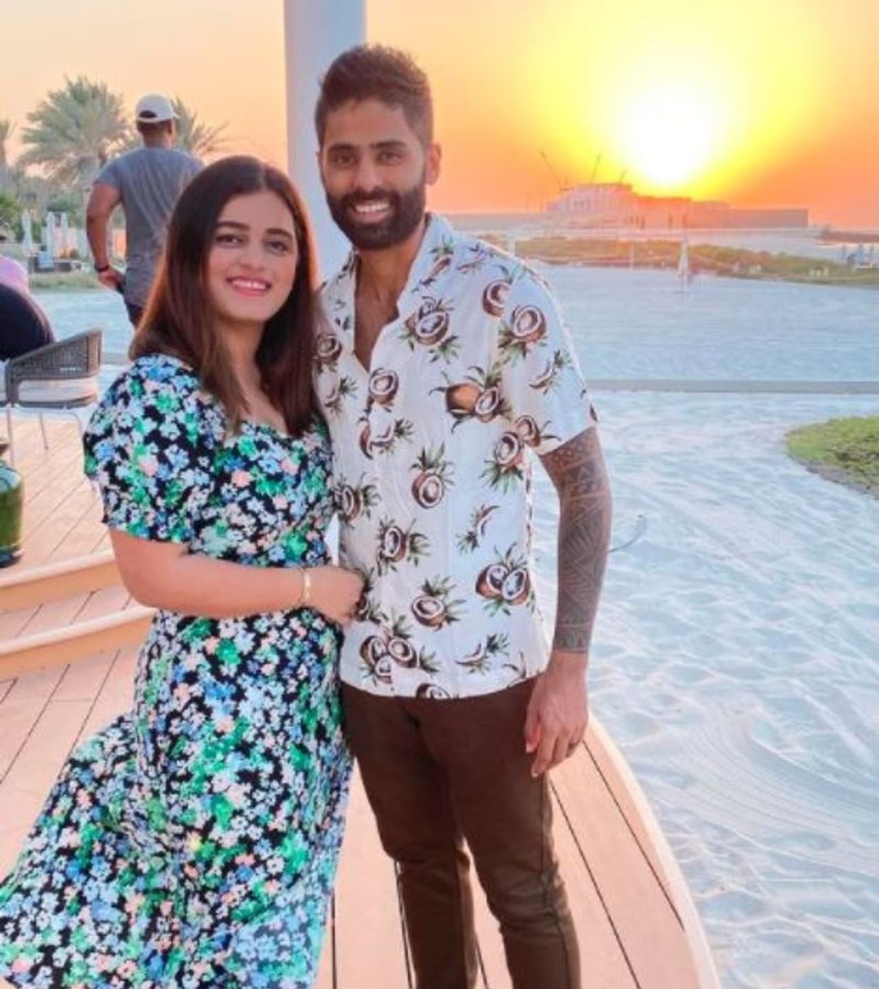 ಮುಂಬೈ ಇಂಡಿಯನ್ಸ್ ತಂಡವು ರಾಜಸ್ಥಾನ ರಾಯಲ್ಸ್ ವಿರುದ್ದ ಗೆಲುವು ಸಾಧಿಸಿದಾಗ ಸೂರ್ಯ ಪತ್ನಿ ದೇವಿಶಾ ಶೆಟ್ಟಿ ಸ್ಟೇಡಿಯಂನಲ್ಲಿ ಉಪಸ್ಥಿತರಿದ್ದರು. ದೇವಿಶಾ ಶೆಟ್ಟಿ ಸ್ಟೇಡಿಯಂನ ಗ್ಲಾಸ್ನ ಹಿಂಬದಿಯಲ್ಲಿದ್ದರು. ಮೈದಾನದಲ್ಲಿದ್ದ ಸೂರ್ಯಕುಮಾರ್ ಯಾದವ್ ತಮ್ಮ ಪತ್ನಿಗೆ ಚುಂಬಿಸಲು ಹತ್ತಿರ ಬಂದಿದ್ದಾರೆ. ಆಗ ದೇವಿಶಾ ತಮ್ಮ ಕೆನ್ನೆಯನ್ನು ಮುಂದೆ ನೀಡಿದ್ದಾರೆ. ತಡಮಾಡದ ಸೂರ್ಯ, ಗ್ಲಾಸ್ನ ಮತ್ತೊಂದು ತುದಿಯಿಂದ ಮುತ್ತಿಕ್ಕಿದ್ದಾರೆ.