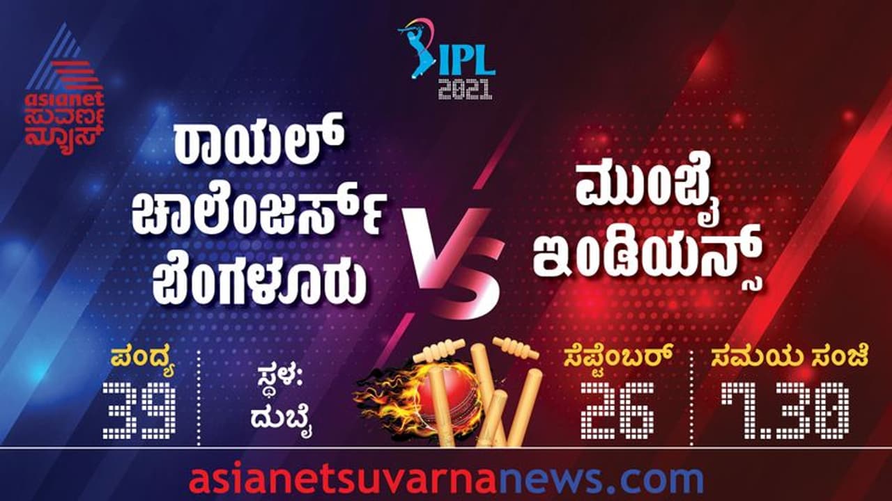 ಯುಎಇ ಚರಣದ ಪಂದ್ಯದಲ್ಲಿ ಉಭಯ ತಂಡಗಳು ಗೆಲುವಿನ ಖಾತೆ ತೆರೆಯಲು ತುದಿಗಾಲಿನಲ್ಲಿ ನಿಂತಿವೆ. ರಾಯಲ್ ಚಾಲೆಂಜರ್ಸ್ ಬೆಂಗಳೂರು(Royal Challengers Bangalore) ತಂಡವು ಸತತ 2 ಪಂದ್ಯಗಳಲ್ಲಿ ಸೋತಿದ್ದರೆ, ಮುಂಬೈ ಇಂಡಿಯನ್ಸ್(Mumbai Indians) ಕೂಡಾ ಸತತ 2 ಪಂದ್ಯಗಳಲ್ಲಿ ಸೋತಿದೆ. ಪ್ಲೇ-ಆಫ್ ದೃಷ್ಟಿಯಿಂದ ಎರಡೂ ತಂಡಗಳಿಗೆ ಇದು ನಿರ್ಣಾಯಕ ಪಂದ್ಯ ಎನಿಸಿದೆ