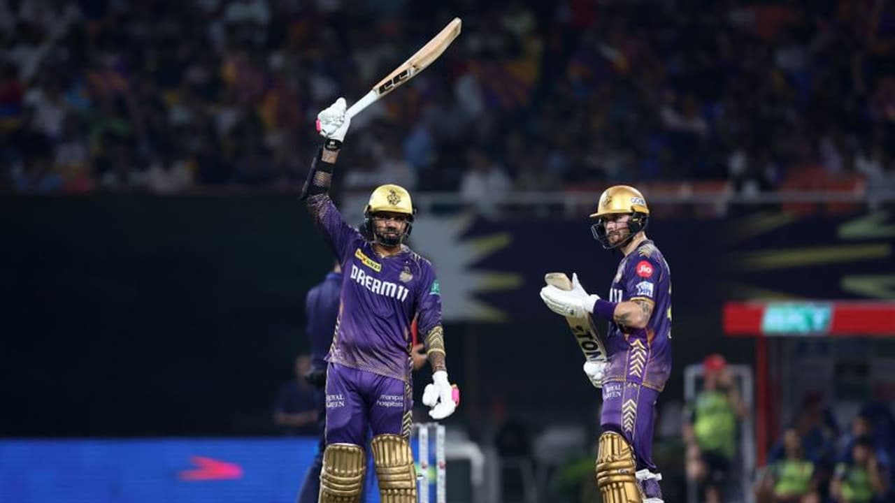 ಮೊದಲು ಬ್ಯಾಟಿಂಗ್ ಇಳಿದ ಕೆಕೆಆರ್ ತಂಡಕ್ಕೆ ಸುನಿಲ್ ನರೈನ್ ಬ್ಯಾಟಿಂಗ್ ಅಬ್ಬರ ನೆರವಾಯಿತು. ಪಿಲಿಪ್ ಸಾಲ್ಟ್ ಹಾಗೂ ಸನಿಲ್ ನರೈನ್ ಸ್ಫೋಟಕ ಬ್ಯಾಟಿಂಗ್ನಿಂದ ಮೊದಲ ವಿಕೆಟ್ಗೆ ಈ ಜೋಡಿ 61 ರನ್ ಜೊತೆಯಾಟ ನೀಡಿತು. ಸಾಲ್ಟ್ 32 ರನ್ ಸಿಡಿಸಿ ಔಟಾದರು. ಆದರೆ ನರೈನ್ ಅಬ್ಬರ ಮುಂದುವರಿಯಿತು. ನರೈನ್ ಹಾಗೂ ಅಂಗ್ಕ್ರಿಶ್ ರಘುವಂಶಿ ಸ್ಫೋಟಕ ಬ್ಯಾಟಿಂಗ್ನಿಂದ ಕೆಕೆಆರ್ ಬೃಹತ್ ಮೊತ್ತದತ್ತ ದಾಪುಗಾಲಿಟ್ಟಿತು.
