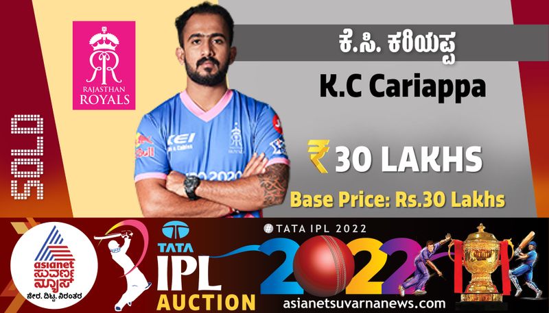 20 ಲಕ್ಷ ಮೂಲ ಬೆಲೆಯ ಕೆಸಿ ಕಾರ್ಯಪ್ಪಗೆ ರಾಜಸ್ಥಾನ ರಾಯಲ್ಸ್ ತಂಡ 30 ಲಕ್ಷ ರೂಪಾಯಿ ನೀಡಿ ಖರೀದಿಸಿದೆ. 2015ರಲ್ಲಿ ಕೆಸಿ ಕಾರ್ಯಪ್ಪ ಐಪಿಎಲ್ ಟೂರ್ನಿಗೆ ಪದಾರ್ಪಣೆ ಮಾಡಿದ್ದಾರೆ. ಮೊದಲ ಆವೃತ್ತಿಯಲ್ಲಿ ಕೆಸಿ ಕಾರ್ಯಪ್ಪ 2 ಕೋಟಿ ರೂಪಾಯಿಗೆ ಕೋಲ್ಕತಾ ನೈಟ್ ರೈಡರ್ಸ್ ಪಾಲಾಗಿದ್ದರು. ಬಳಿಕ ಐಪಿಎಲ್ ಟೂರ್ನಿಯಲ್ಲಿ ಸಕ್ರಿಯರಾಗಿರುವ ಕೆಸಿ ಕಾರ್ಯಪ್ಪ ಇದೀಗ ರಾಜಸ್ಥಾನ ರಾಯಲ್ಸ್ ಪಾಲಾಗಿದ್ದಾರೆ.