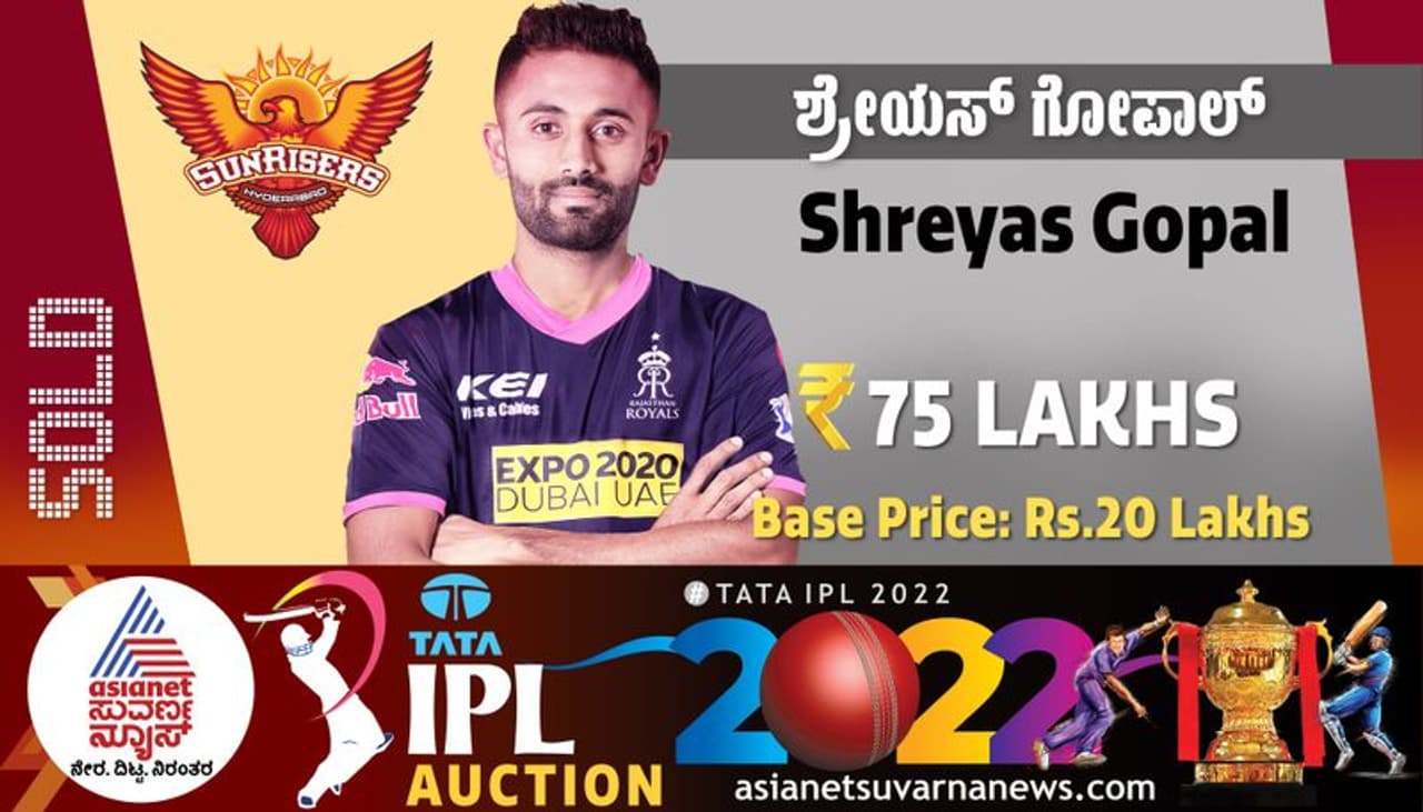 ಕಳೆದ ಬಾರಿ ರಾಜಸ್ಥಾನ ರಾಯಲ್ಸ್ ತಂಡದ ಪರ ಆಡಿದ್ದ ಕನ್ನಡಿಗ ಶ್ರೇಯಸ್ ಗೋಪಾಲ್ ಈ ಬಾರಿ ಸನ್ರೈಸರ್ಸ್ ಹೈದರಾಬಾದ್ ಪಾಲಾಗಿದ್ದಾರೆ. ಶ್ರೇಯಸ್ ಗೋಪಾಲ್ 48 ಐಪಿಎಲ್ ಪಂದ್ಯಗಳಲ್ಲಿ 48 ವಿಕೆಟ್ ಕಬಳಿಸಿದ್ದಾರೆ.
