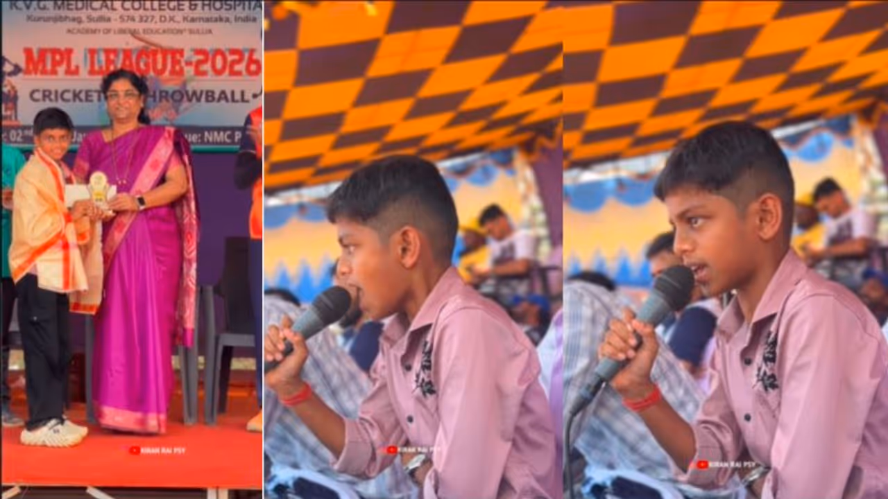 ವೀಕ್ಷಕ ವಿವರಣೆ ಅಥವಾ ಕ್ರಿಕೆಟ್ ಕಾಮೆಂಟರಿ ಹೇಳೋದು ಅಷ್ಟು ಸುಲಭದ ಕೆಲಸವಲ್ಲ, ಇದಕ್ಕೆ ಭಾಷೆಯ ಪ್ರಾವೀಣ್ಯತೆಯ ಜೊತೆ ನಿರರ್ಗಳವಾದ ನಿರಂತರ ಮಾತು ಬ್ಯಾಟರ್ ದೂರಕ್ಕೆ ಹೊಡೆದ ಚೆಂಡಿನ ವೇಗದಷ್ಟೇ ಚುರುಕುತನ, ನೋಟ ಬಹಳ ಅಗತ್ಯವಾಗಿ ಬೇಕು. ಹೀಗಿರುವಾಗ 14 ವರ್ಷದ ಪುಟ್ಟ ಬಾಲಕನ ಕ್ರಿಕೆಟ್ ಕಾಮೆಂಟರಿಯ ವೀಡಿಯೋವೊಂದು ಸಾಮಾಜಿಕ ಜಾಲತಾಣದಲ್ಲಿ ಭಾರಿ ವೈರಲ್ ಆಗಿದೆ. Kiran Bellare ಎಂಬುವವರು ತಮ್ಮ ಊರಿನ ಈ ಪುಟಾಣಿ ಪ್ರತಿಭೆಯನ್ನು ಸಾಮಾಜಿಕ ಜಾಲತಾಣದಲ್ಲಿ ಪರಿಚಯಿಸಿದ್ದಾರೆ. ವೀಡಿಯೋದಲ್ಲಿ ಬಾಲಕ ಸ್ಪಷ್ಟ ಹಾಗೂ ನಿರರ್ಗಳವಾಗಿ ಕನ್ನಡ ಹಾಗೂ ಇಂಗ್ಲೀಷ್ನಲ್ಲಿ ವೀಕ್ಷಕ ವಿವರಣೆಯನ್ನು ನೀಡುತ್ತಿದ್ದಾನೆ.