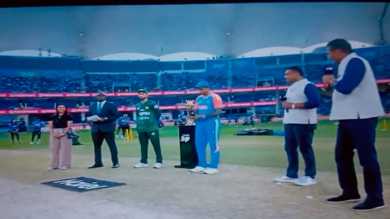 ಕ್ರಿಕೆಟ್ ಇತಿಹಾಸದಲ್ಲಿ ಇದೇ ಮೊದಲ ಬಾರಿಗೆ ಇಬ್ಬರು ಪ್ರಸೆಂಟರ್ ಮೂಲಕ ಟಾಸ್ ಪ್ರಕ್ರಿಯೆ ನಡೆಸಲಾಗಿದೆ. ಪಾಕಿಸ್ತಾನ ತಂಡದ ಜೊತೆಗೆ ಭಾರತ ಹ್ಯಾಂಡ್ಶೇಕ್ ನಿರಾಕರಿಸಿದ ಕಾರಣ, ಫೈನಲ್ ಪಂದ್ಯಕ್ಕೆ ಪಾಕಿಸ್ತಾನ ಕೂಡ ಭಾರತದ ಪ್ರೆಸೆಂಟರ್ ಜೊತೆ ಮಾತನಾಡಲು ನಿರಾಕರಿಸಿದೆ. ಹೀಗಾಗಿ ಪಾಕಿಸ್ತಾನ ನಾಯಕನ ಮಾತನಾಡಿಸಲು ಪಾಕಿಸ್ತಾನದ ಕಮೆಂಟೇಟರ್ ವಕಾರ್ ಯೂನಿಸ್ ಕರೆತರಲಾಗಿತ್ತು. ಇತ್ತ ಸೂರ್ಯಕುಮಾರ್ ಮಾತನಾಡಿಸಲು ರವಿ ಶಾಸ್ತ್ರಿಯನ್ನು ಬಳಸಿಕೊಳ್ಳಲಾಗಿದೆ.