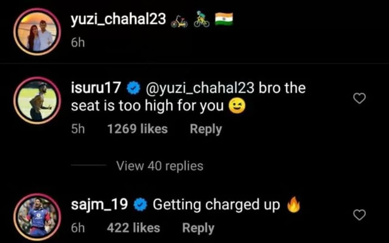 ಈ ಫೋಟೋ ನೋಡಿದ ಶ್ರೀಲಂಕಾ ಹಾಗೂ ರಾಯಲ್ ಚಾಲೆಂಜರ್ಸ್ ಬೆಂಗಳೂರು ತಂಡದ ವೇಗಿ ಇಸುರು ಉಡಾನ, ನಿನಗೆ ಸೈಕಲ್ ಸೀಟು ತುಂಬಾನೆ ಎತ್ತರವಾಯ್ತು ಎಂದು ಕಾಲೆಳೆದಿದ್ದಾರೆ.