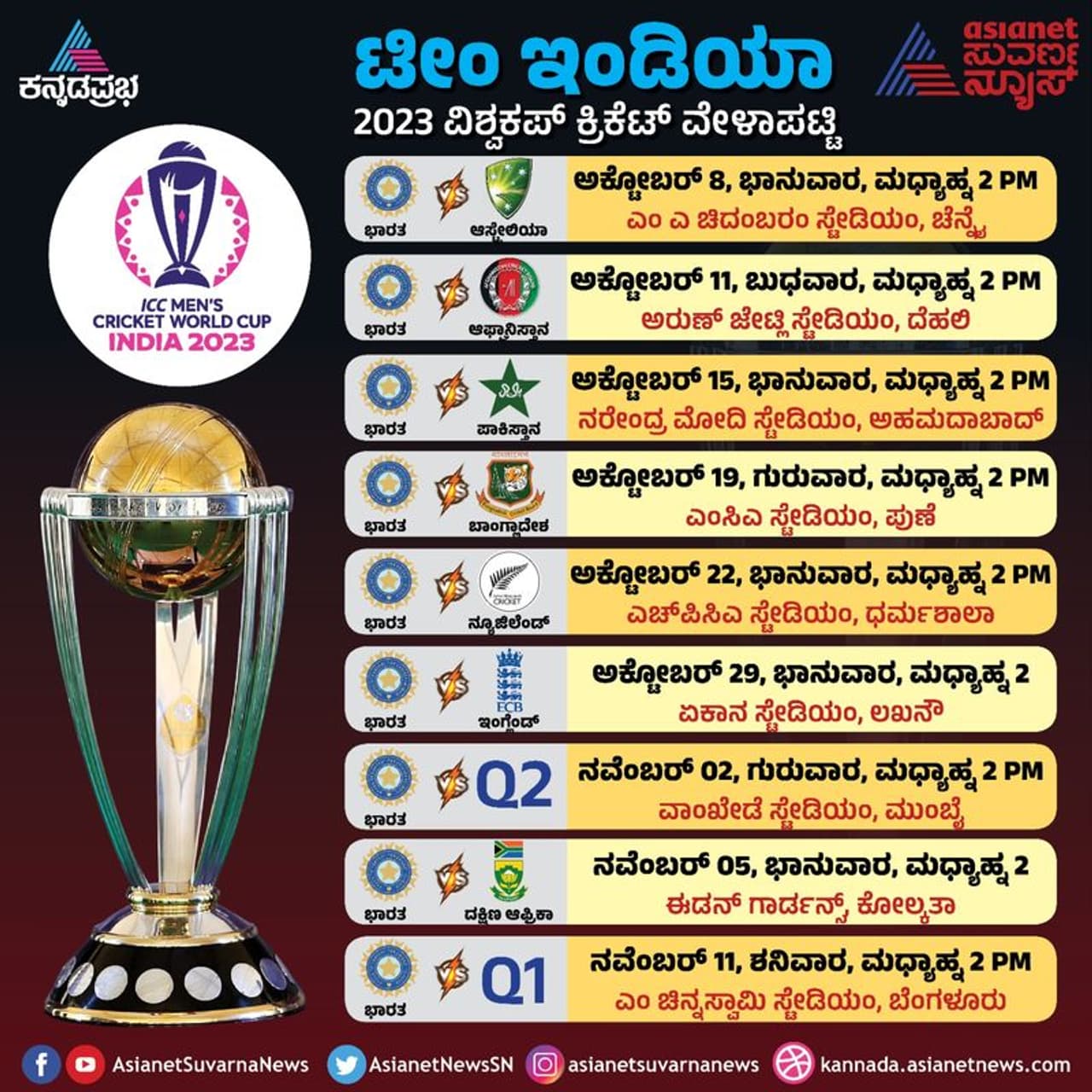 ವಿಶ್ವಕಪ್ ಟೂರ್ನಿಯಲ್ಲಿ ಭಾರತದ ವೇಳಾಪಟ್ಟಿ ಹೀಗಿದೆ: