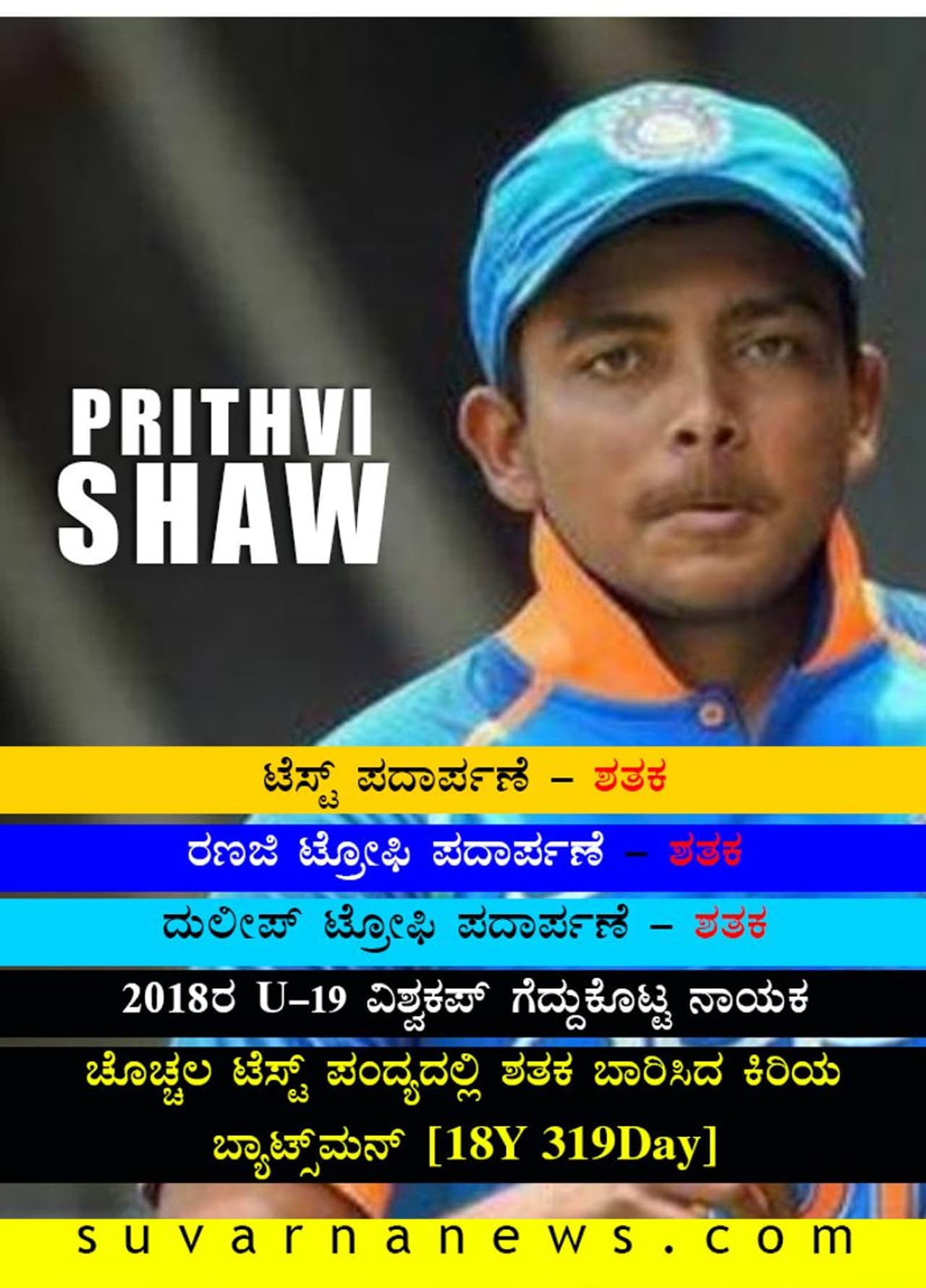 ಅಂಡರ್-19 ವಿಶ್ವಕಪ್ ವಿಜೇತ ತಂಡದ ನಾಯಕ ಪೃಥ್ವಿ ಶಾ 20ನೇ ವಸಂತಕ್ಕೆ ಕಾಲಿರಿಸಿದ್ದಾರೆ. ತಮ್ಮ ಬರ್ತ್ ಡೇ ದಿನದಂದೇ ಕ್ರಿಕೆಟ್ ಅಭಿಮಾನಿಗಳಿಗೆ ಸಿಹಿ ಸುದ್ದಿಯೊಂದನ್ನು ನೀಡಿದ್ದಾರೆ. ಈ ಕುರಿತಾದ ವರದಿ ಇಲ್ಲಿದೆ ನೋಡಿ...