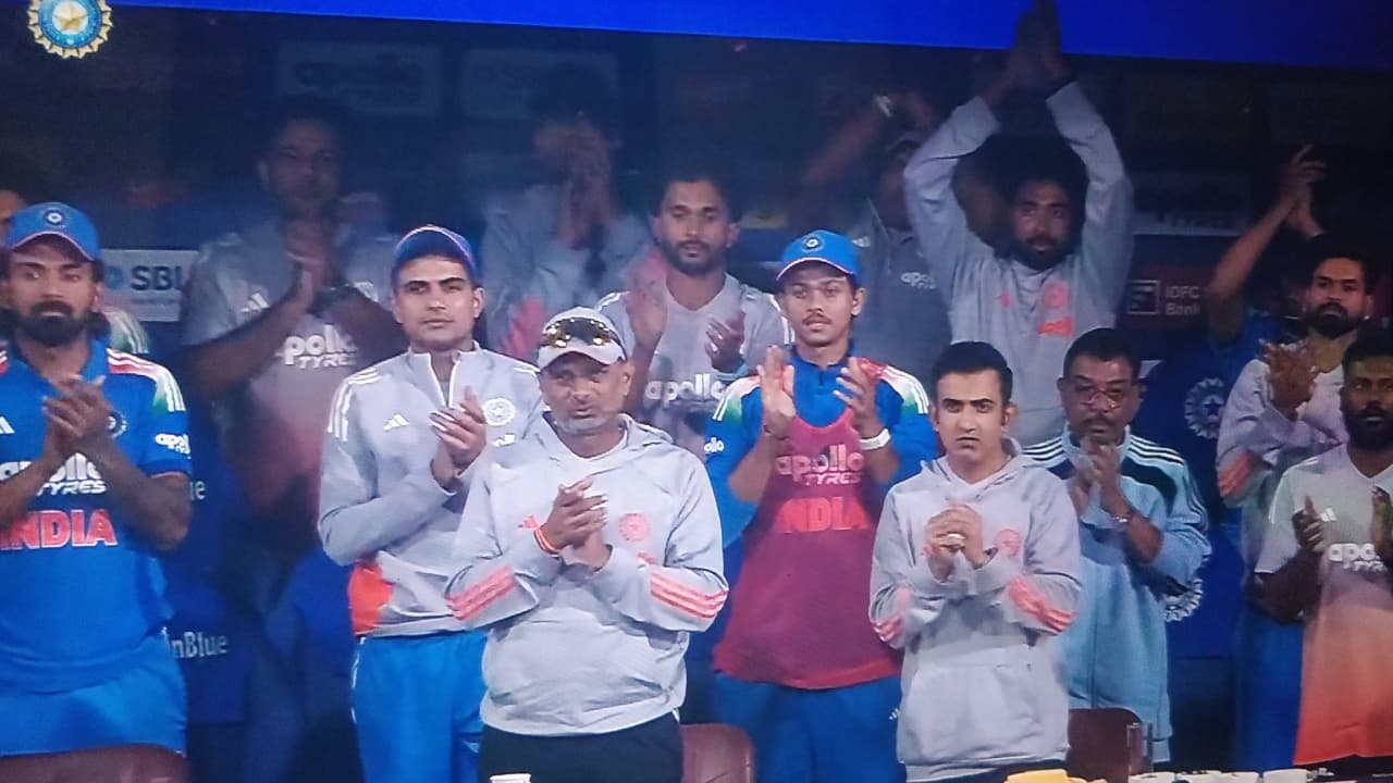 ನ್ಯೂಜಿಲೆಂಡ್ ಇನ್ನಿಂಗ್ಸ್ನ 40ನೇ ಓವರ್ನಲ್ಲಿ 91 ಎಸೆತಗಳಲ್ಲಿ ಕೊಹ್ಲಿ ತಮ್ಮ 54ನೇ ಏಕದಿನ ಶತಕ ಪೂರೈಸಿದರು. ಎಂದಿನಂತೆ ಯಾವುದೇ ಅಬ್ಬರದ ಪ್ರದರ್ಶನವಿಲ್ಲದೆ ಕೊಹ್ಲಿ ಶತಕವನ್ನು ಸಂಭ್ರಮಿಸಿದರು. ಇದರ ಬೆನ್ನಲ್ಲೇ ಗೌತಮ್ ಗಂಭೀರ್ ಸೇರಿದಂತೆ ಟೀಂ ಇಂಡಿಯಾ ಆಟಗಾರರು ಹಾಗೂ ಸಿಬ್ಬಂದಿ ಎದ್ದುನಿಂತು ಚಪ್ಪಾಳೆ ತಟ್ಟಿದರು.