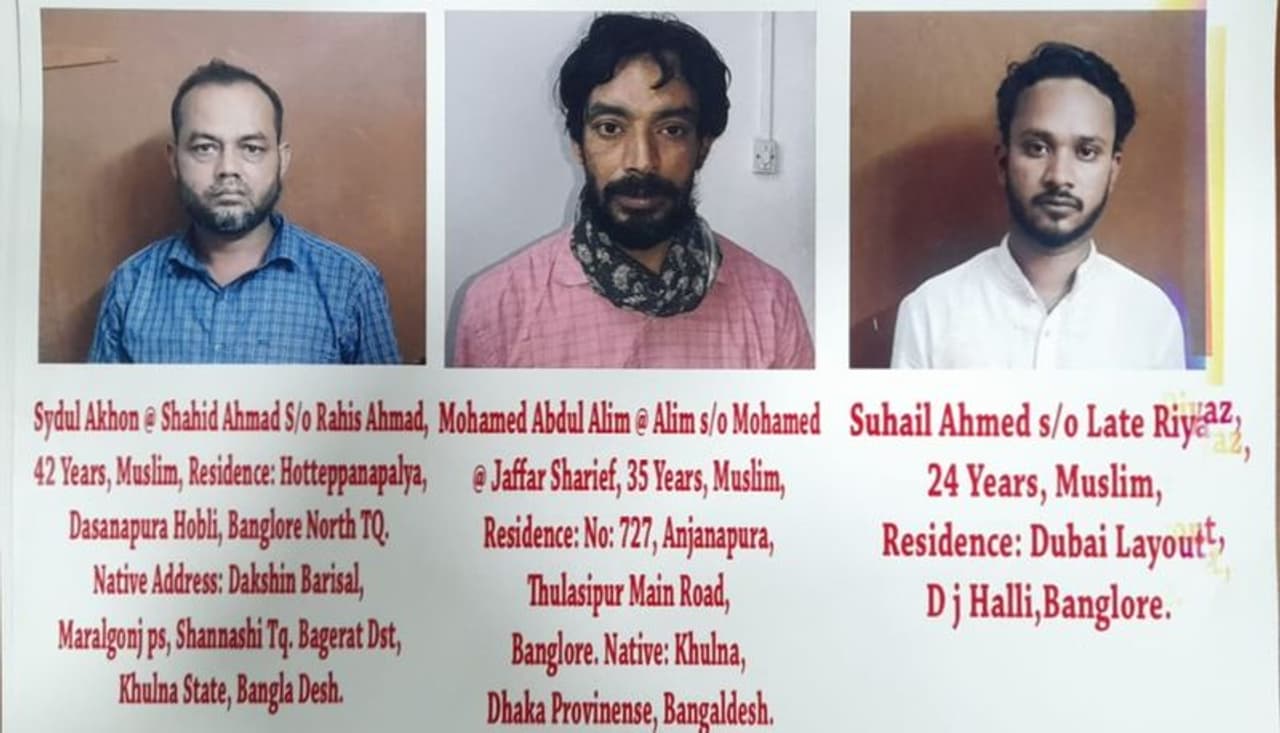 ಬೆಂಗಳೂರು (ಜೂ. 11): ತ್ರಿಪುರಾ ಗಡಿಯಿಂದ ಅಕ್ರಮವಾಗಿ ನುಸುಳಿ ಭಾರತಕ್ಕೆ ಬಂದಿದ್ದ ಬಾಂಗ್ಲಾ ದರೋಡೆಕೋರರ (Bangladeshi Gang) ಖತರ್ನಾಕ್ ಗ್ಯಾಂಗನ್ನು ಮಾದನಾಯಕನ ಹಳ್ಳಿ ಪೊಲೀಸರು ಬಂಧಿಸಿದ್ದಾರೆ. ಎಟಿಎಂ ಕಳ್ಳತನ ಕೇಸ್ ತನಿಖೆ ವೇಳೆ ಕಳ್ಳತನ, ದರೋಡೆ ಮಾಡಿ ಬಂದ ಹಣವನ್ನು ಏಜೆಂಟ್ಗಳ ಮೂಲಕ ಬಾಂಗ್ಲಾದೇಶಕ್ಕೆ ರವಾನೆ ಮಾಡುತ್ತಿದ್ದ ಗ್ಯಾಂಗ್ ಪೊಲೀಸರ ಬಲೆಗೆ ಬಿದ್ದಿದೆ. ಆರೋಪಿಗಳ ಬಳಿ ಭಾರತದ ಆಧಾರ್ ಕಾರ್ಡ್, ಪಾನ್ ಕಾರ್ಡ್, ಡಿ ಎಲ್, ಆಯೂಷ್ ಕಾರ್ಡ್ ಪತ್ತೆಯಾಗಿದೆ. ಅಲ್ಲದೇ ಅರೋಪಿಗಳು ನಕಲಿ ಆಧಾರ್ ಕಾರ್ಡುಗಳನ್ನು ಸಹ ತಯಾರು ಮಾಡುತ್ತಿದ್ದ ಆಘಾತಕಾರಿ ವಿಷಯ ಬೆಳಕಿಗೆ ಬಂದಿದೆ.