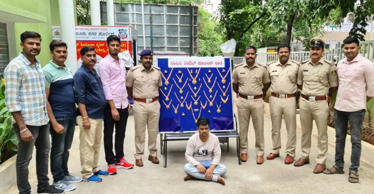 ಬೆಂಗಳೂರು, (ಜೂನ್.13): 1.16 ಕೆಜಿ ಚಿನ್ನಾಭರಣ ಕದ್ದು ಮಾರಲು ಯತ್ನಿಸಿದ್ದ ಖತರ್ನಾಕ್ ಕಳ್ಳನೊಬ್ಬನನ್ನು ಬೆಂಗಳೂರಿನ ನಂದಿನಿ ಲೇಔಟ್ ಪೊಲೀಸರು ಬಂಧಿಸಿದ್ದಾರೆ.