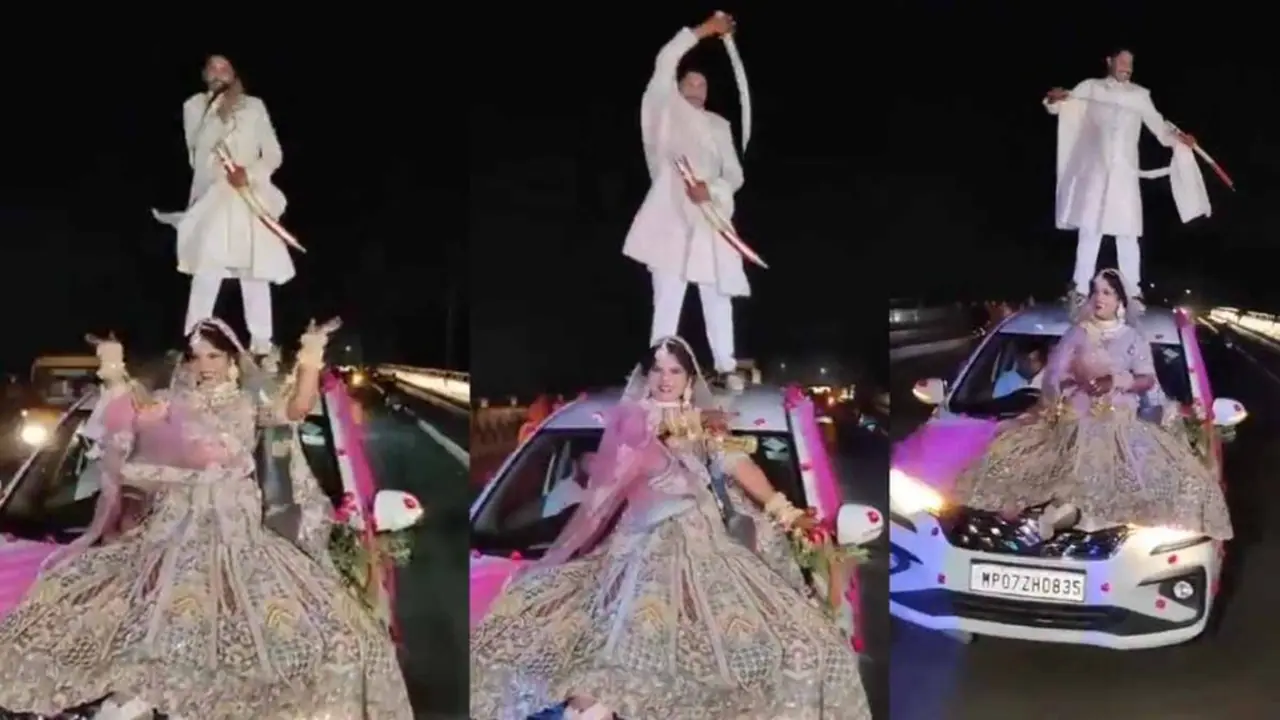 ಚಲಿಸುವ ಕಾರಿನ ಮೇಲೆ ವಧುವಿನ 'ನೋ ಎಂಟ್ರಿ' ನೃತ್ಯ, ವರ 'ಖಡ್ಗಧಾರಿ'